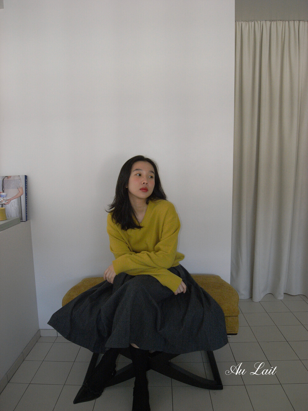 [AU LAIT MADE] VETIVER PLAETS SKIRT