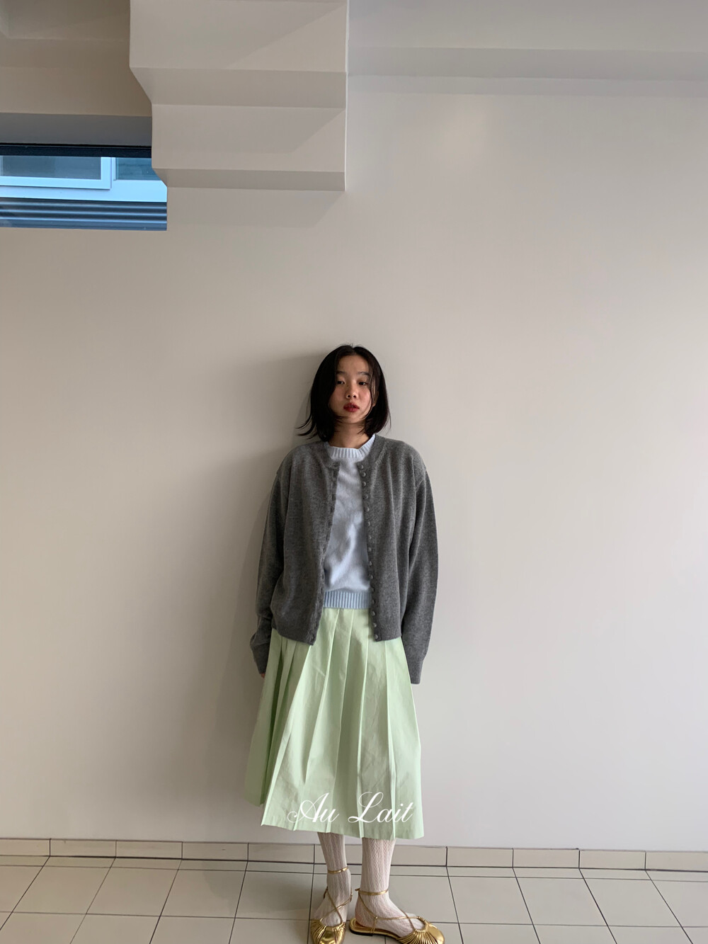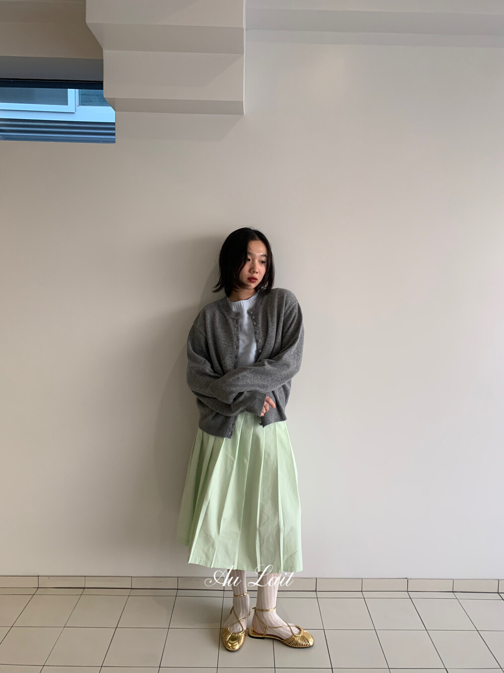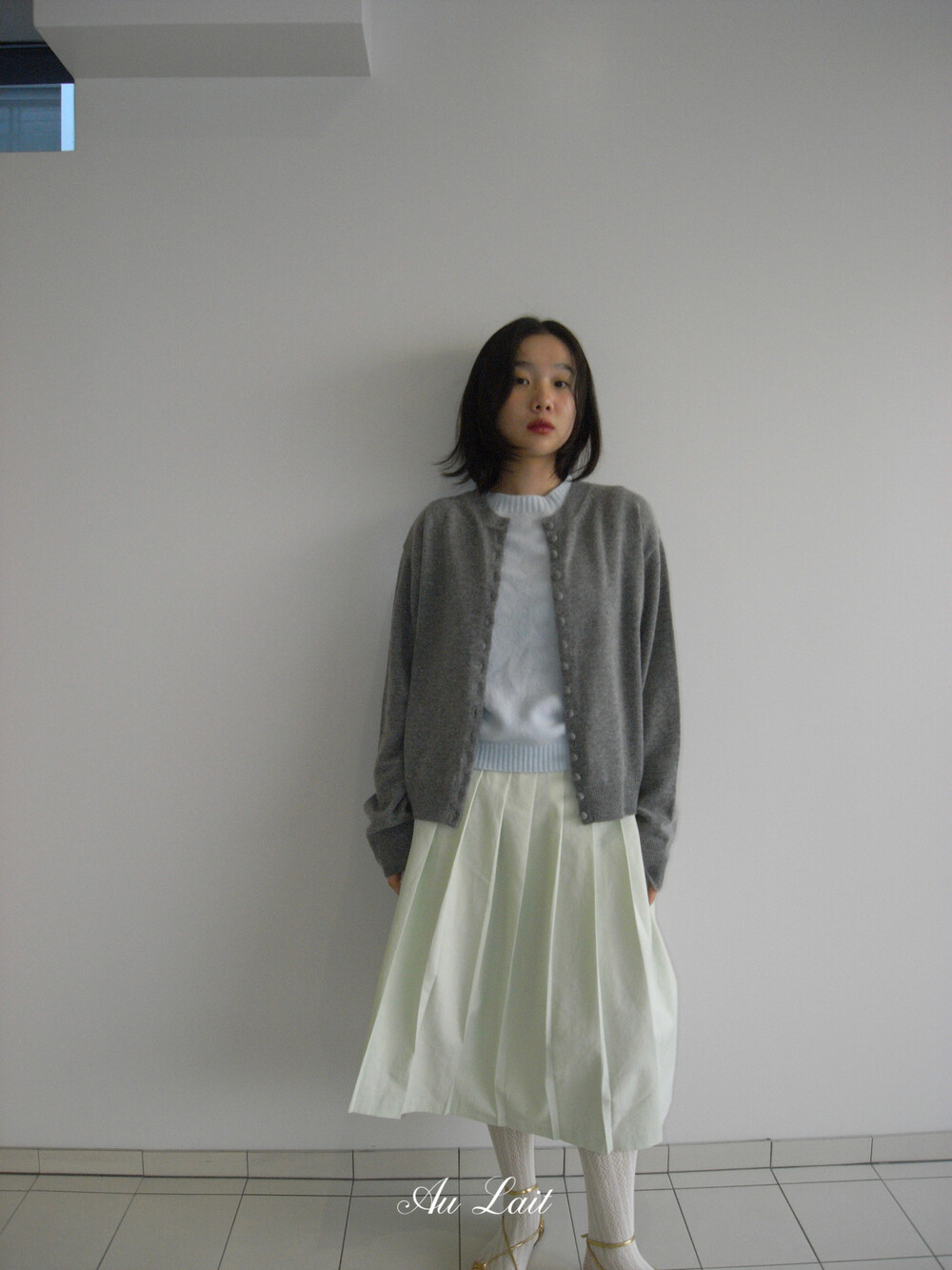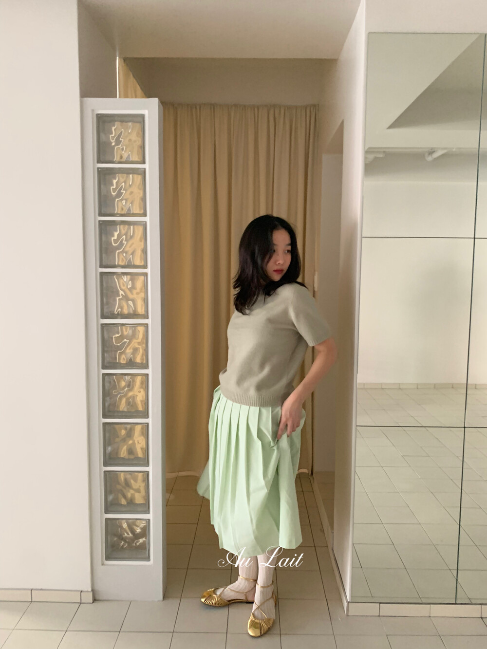 [AU LAIT MADE] MINT PLEATS SKIRT