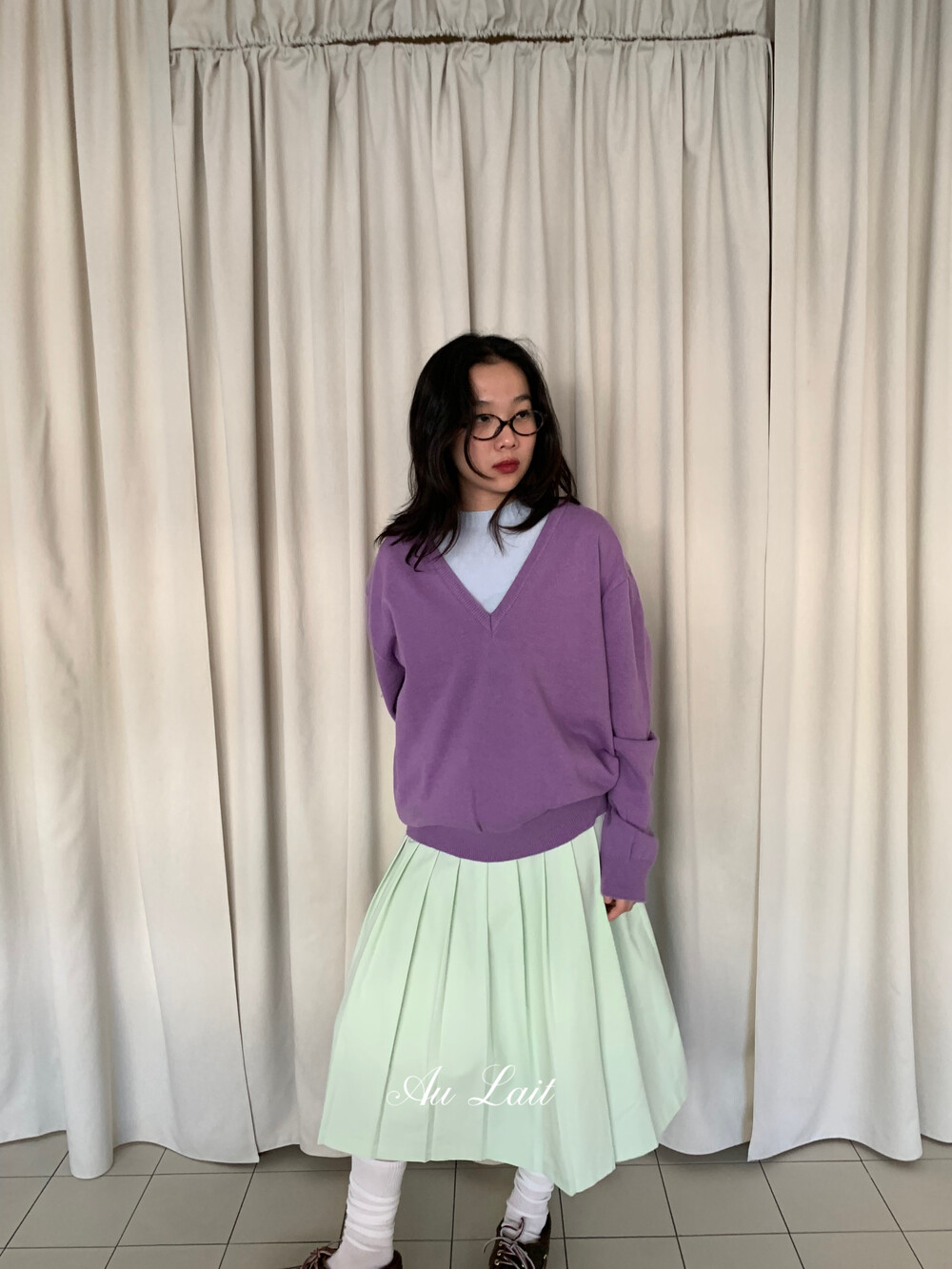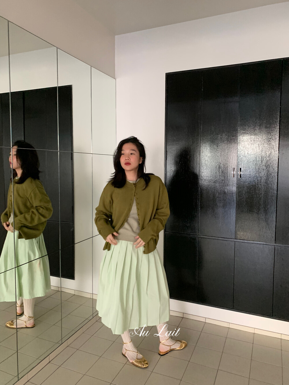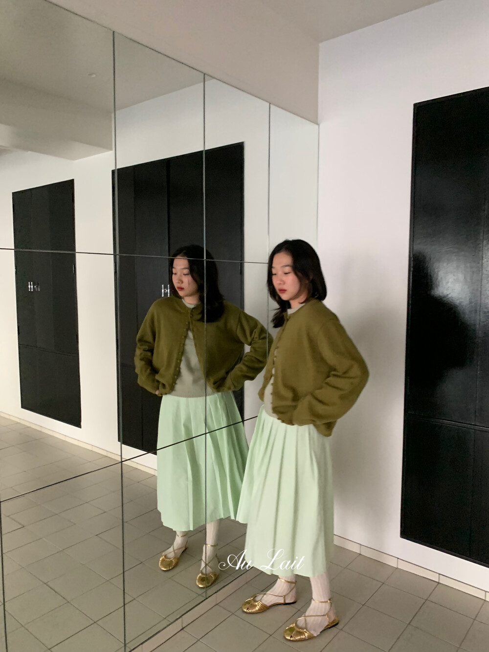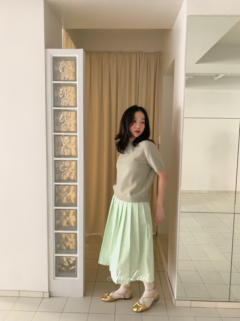 [AU LAIT MADE] MINT PLEATS SKIRT