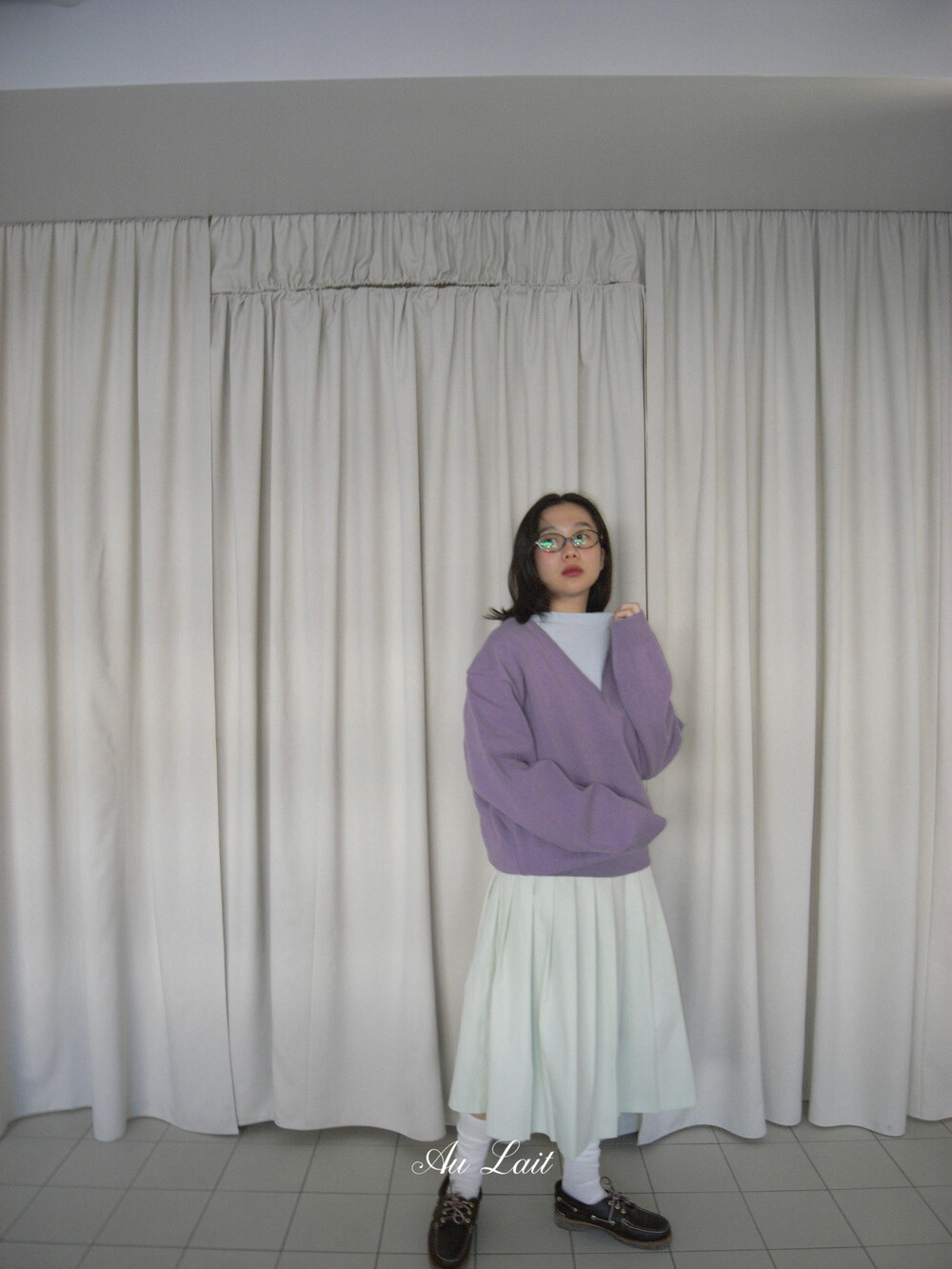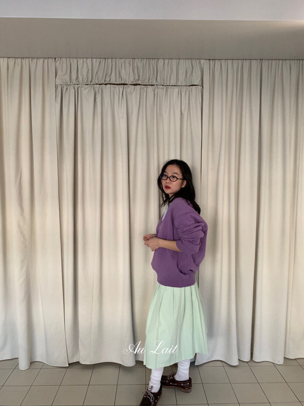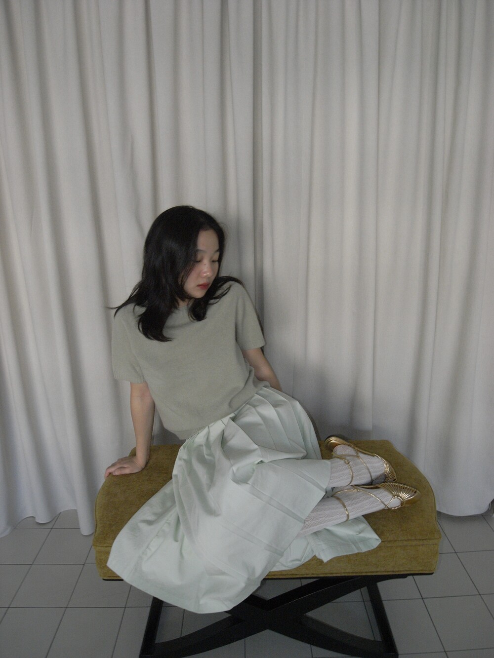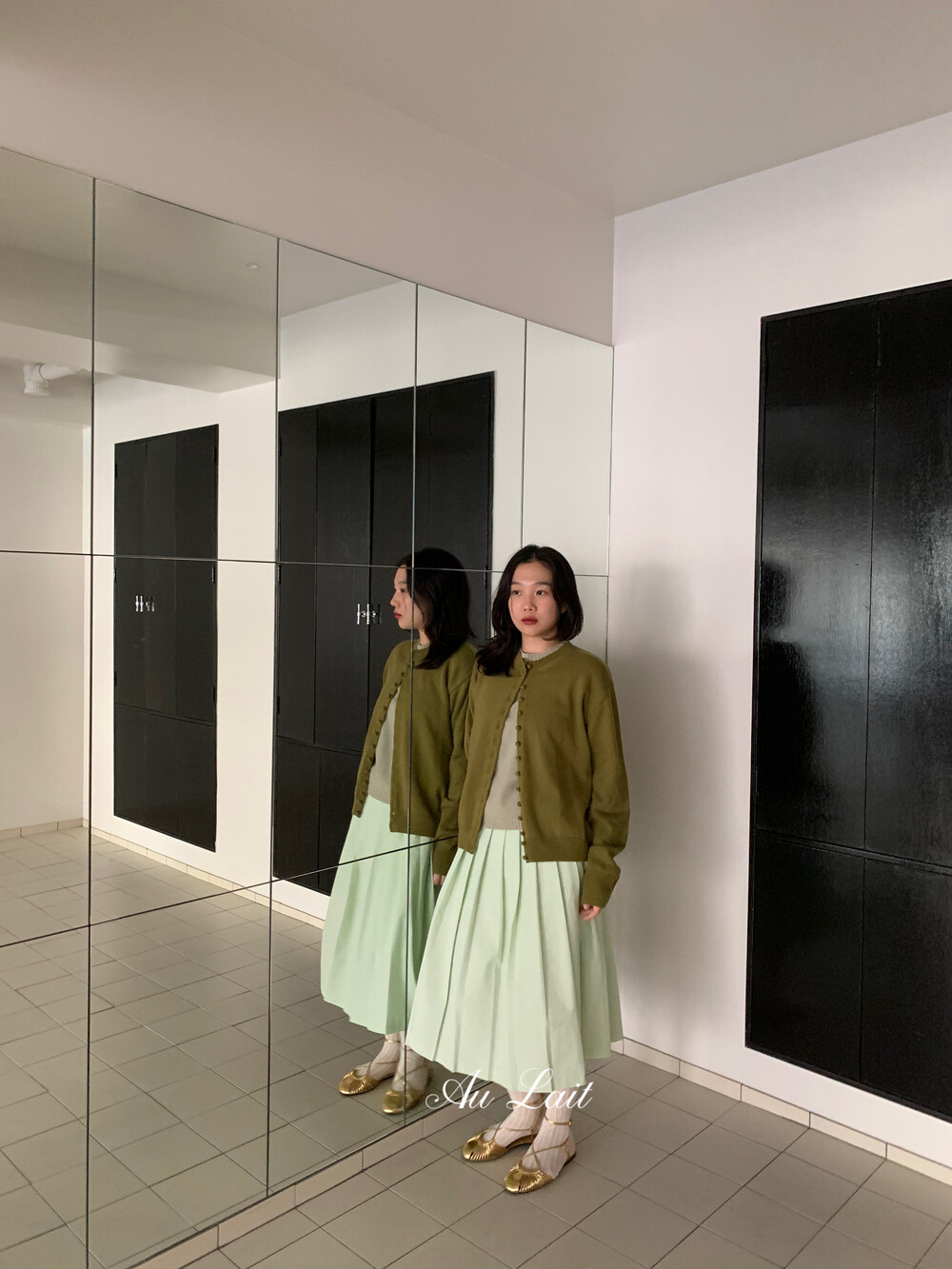 [AU LAIT MADE] MINT PLEATS SKIRT