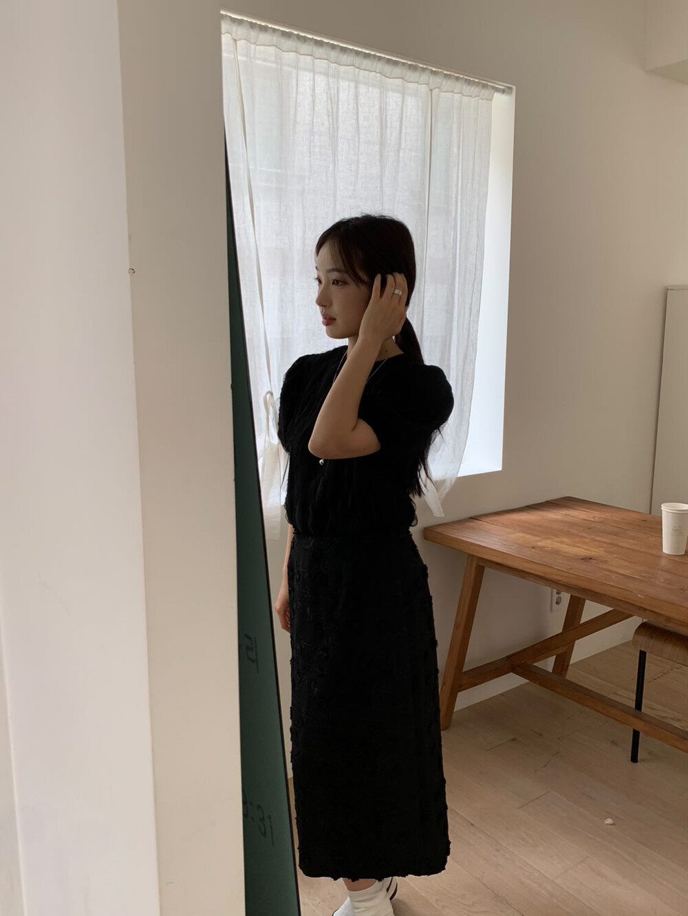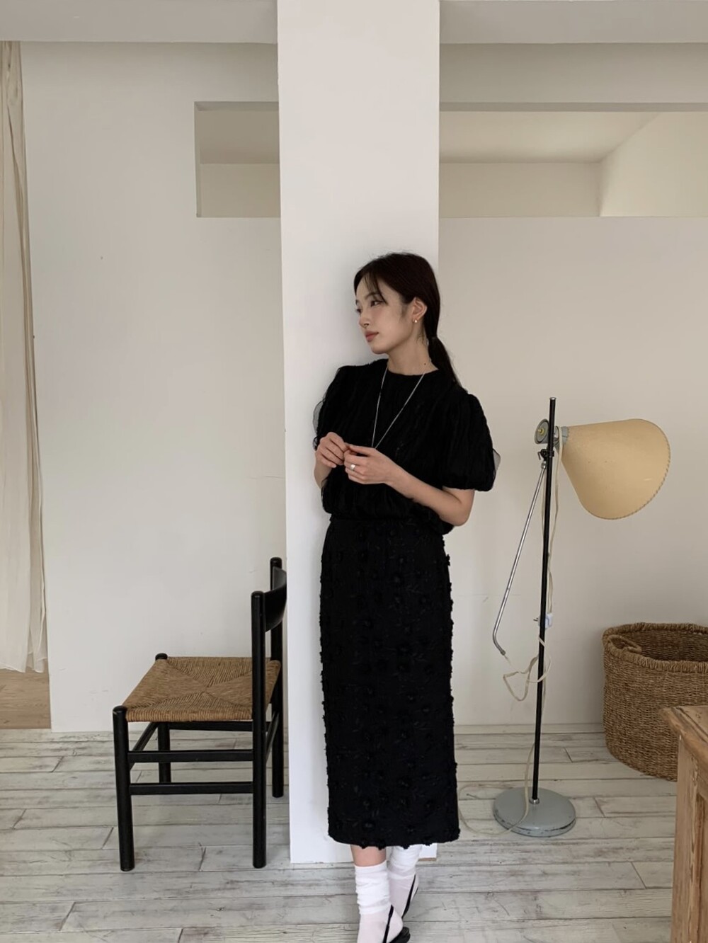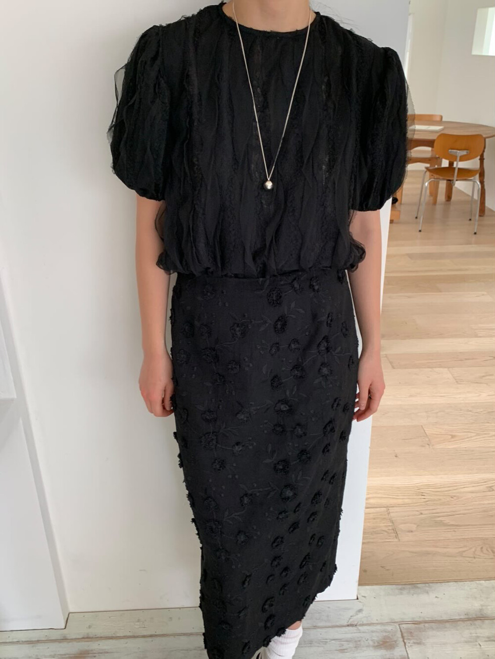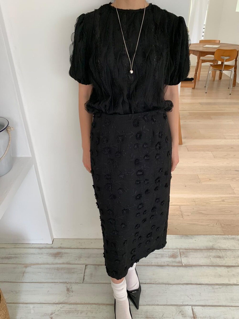 [AU LAIT MADE] WILD FLOWER SKIRT (BK)