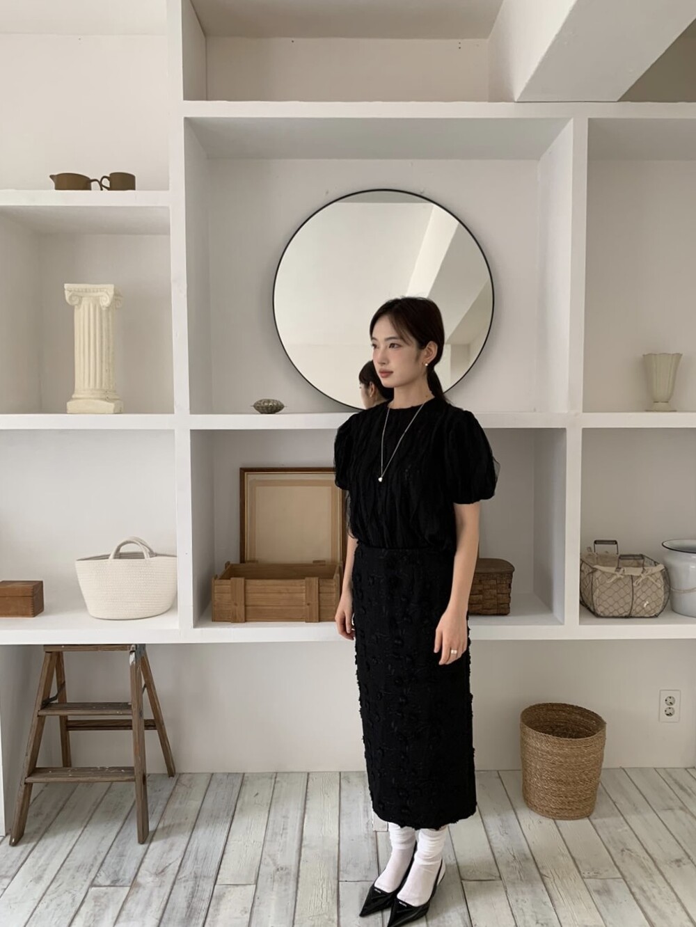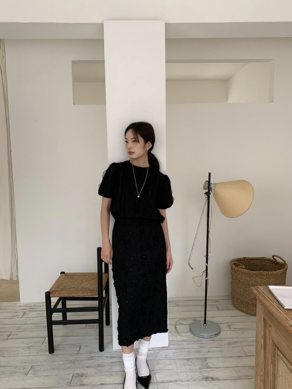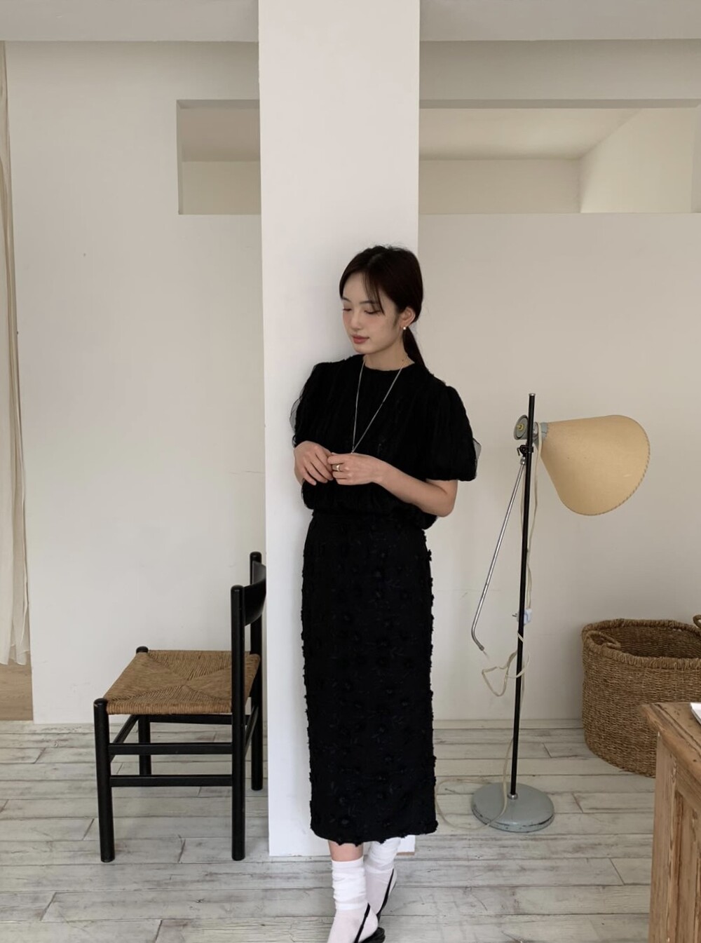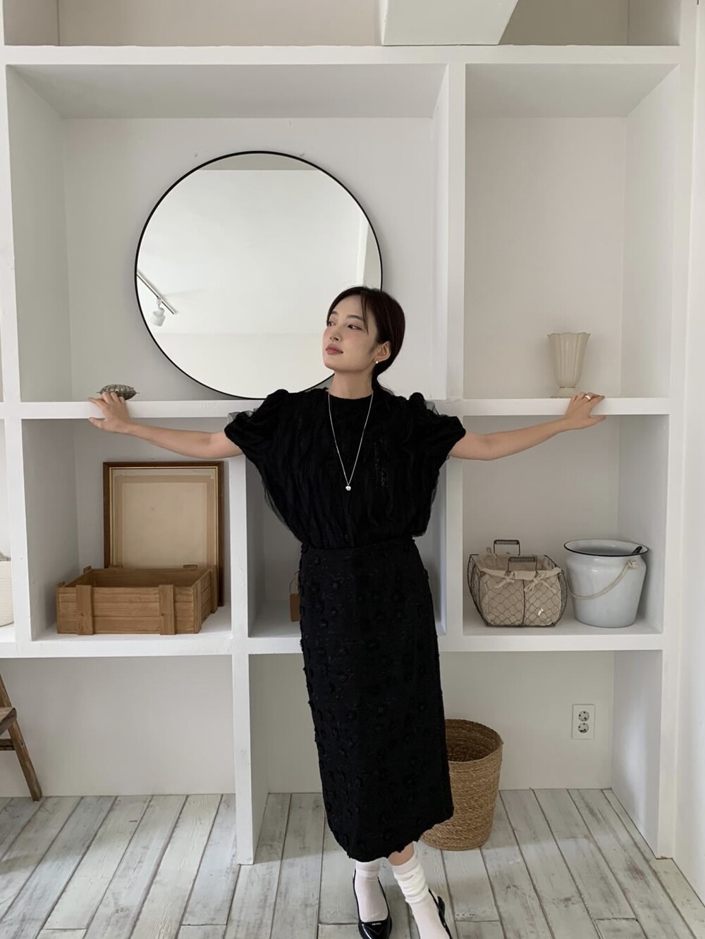 [AU LAIT MADE] WILD FLOWER SKIRT (BK)