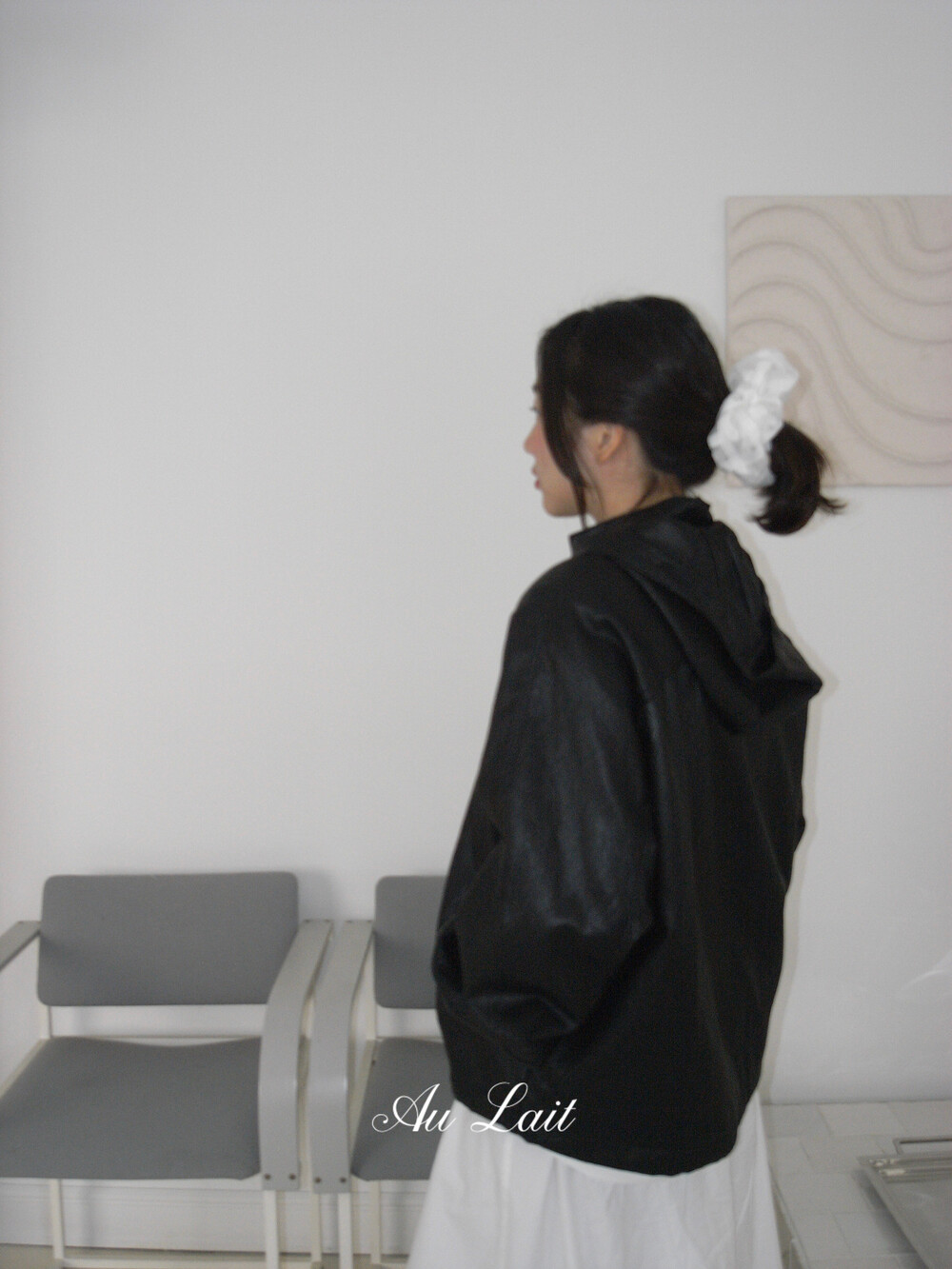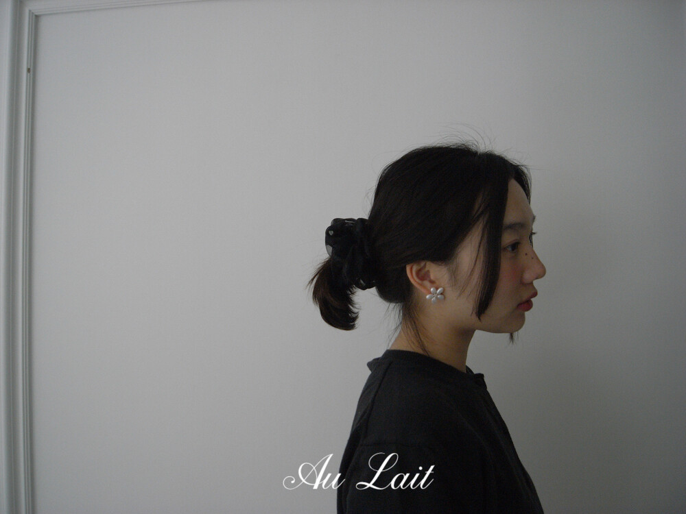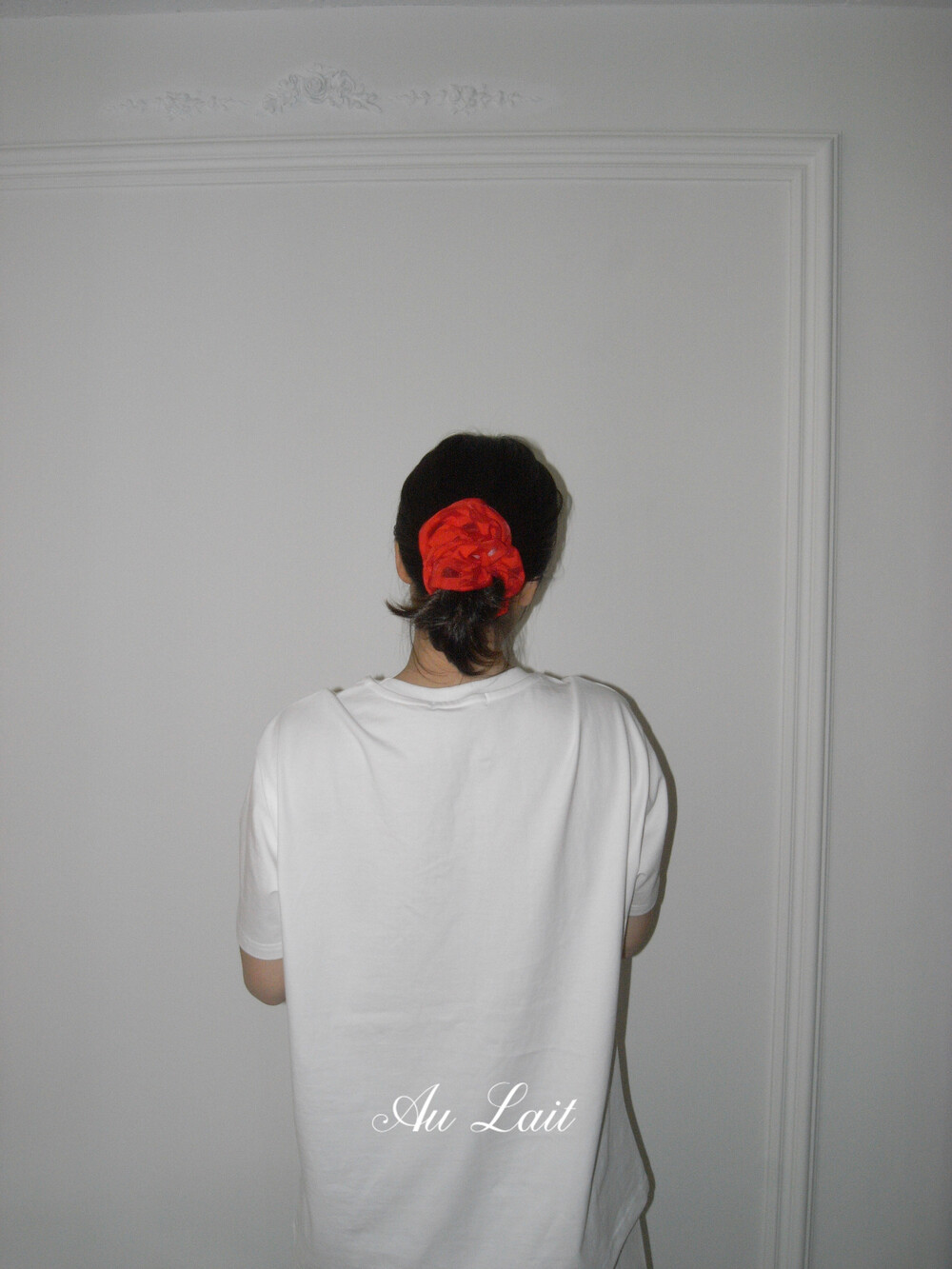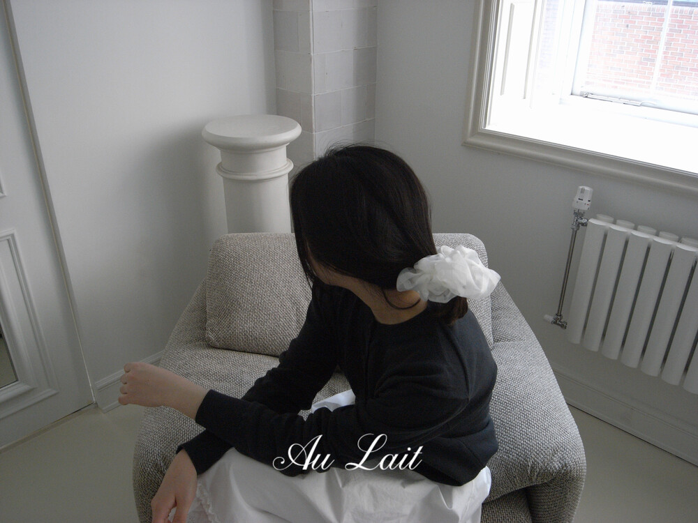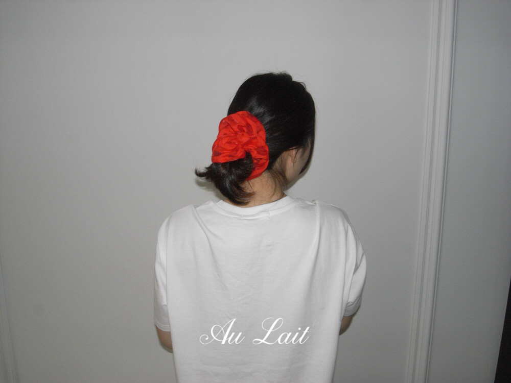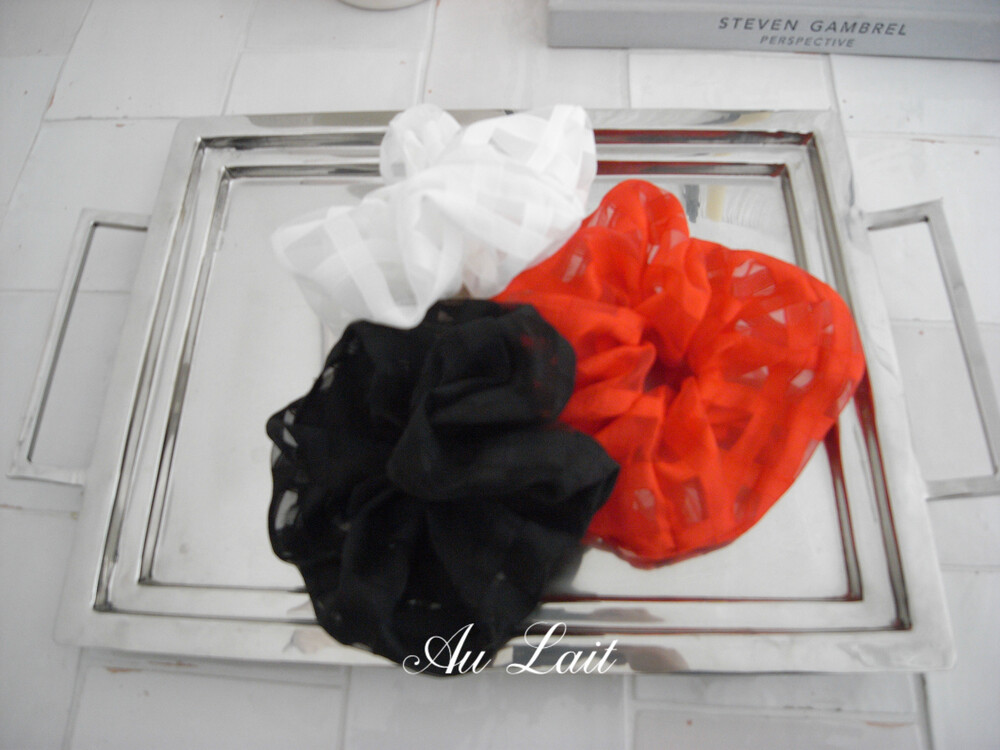 풍성한 체크 오간자 원단을 사용하여 제작된 헤어스크런치.