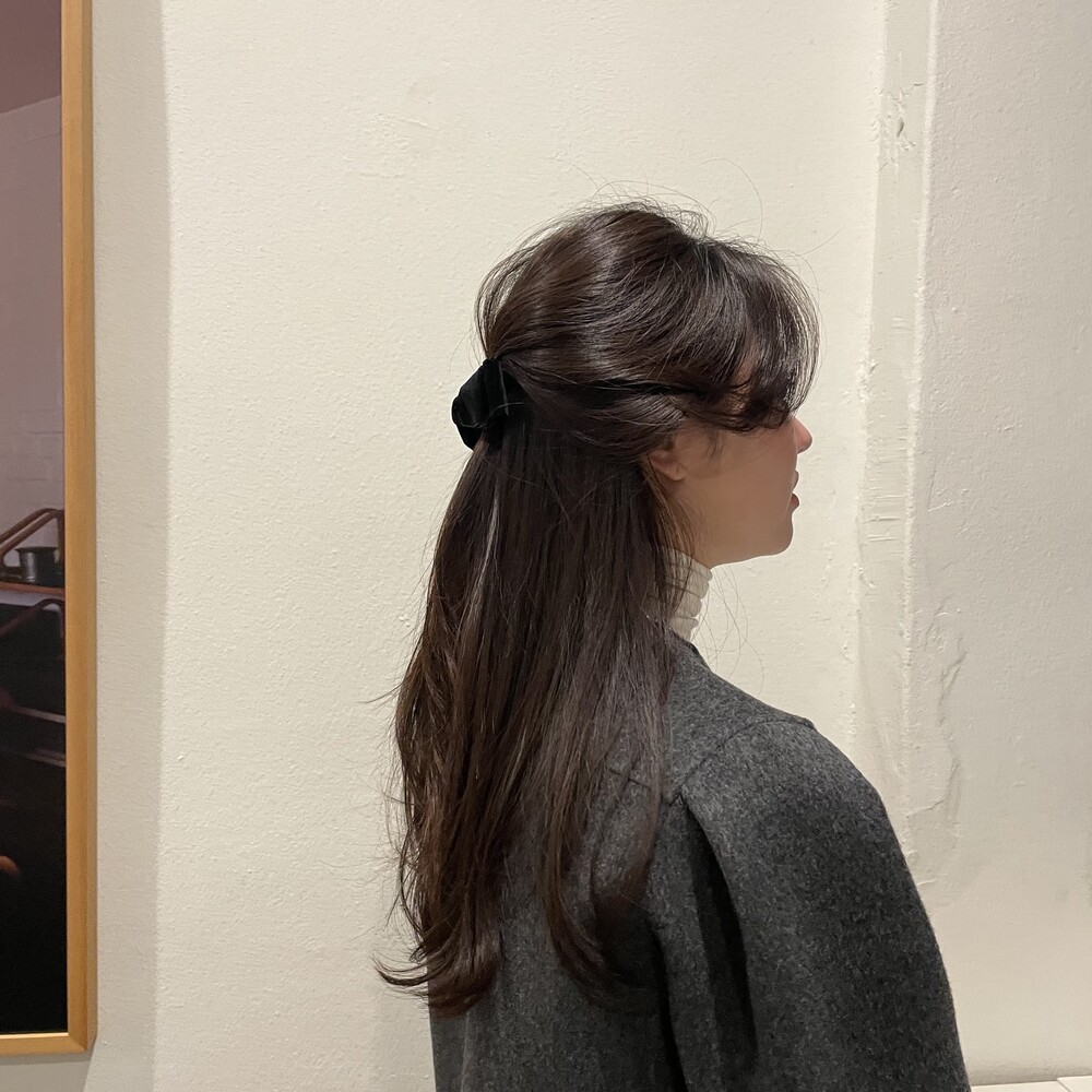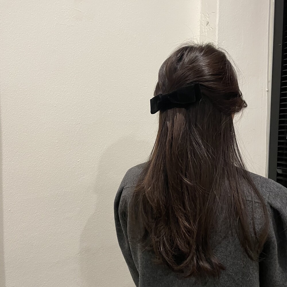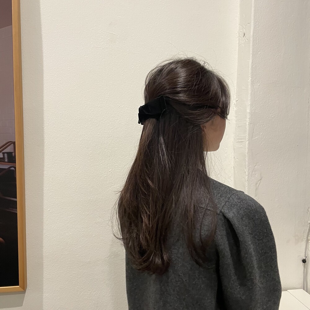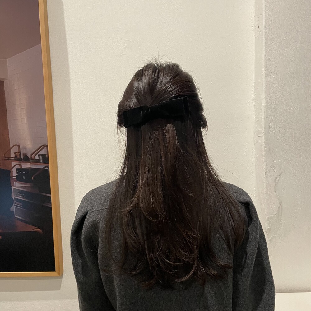 매트한 블랙 컬러의 벨벳 리본핀입니다.
