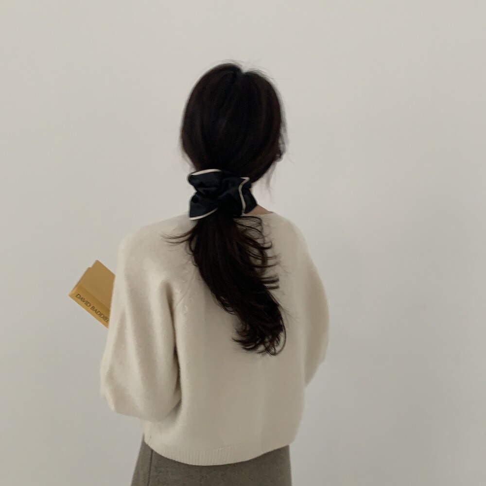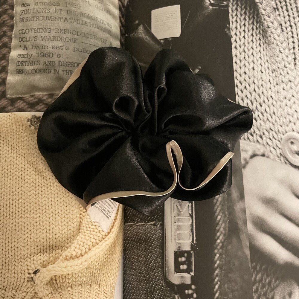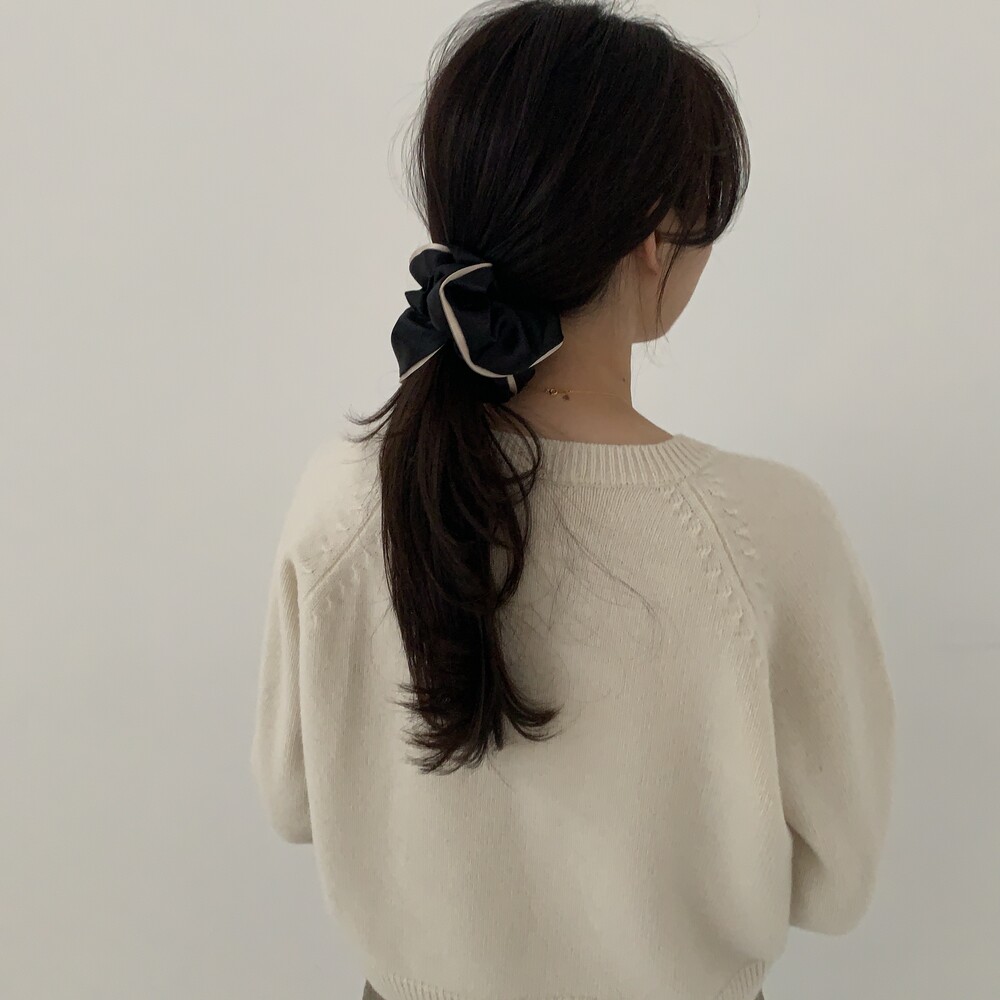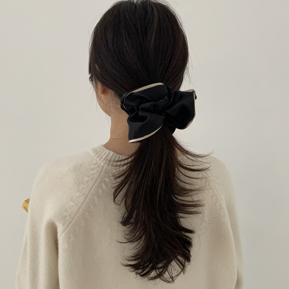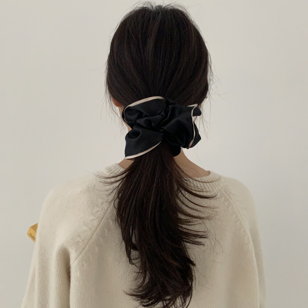 블랙 베이스에 베이지 라인을 더한 헤어 스크런치입니다.