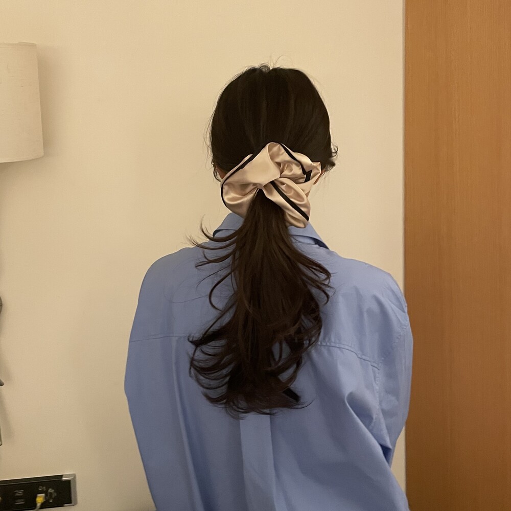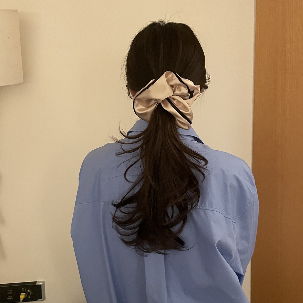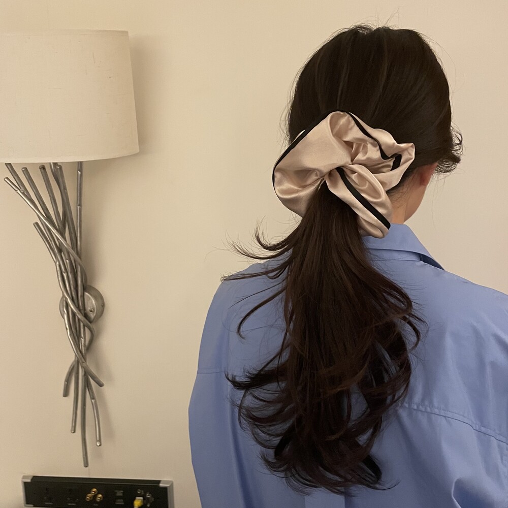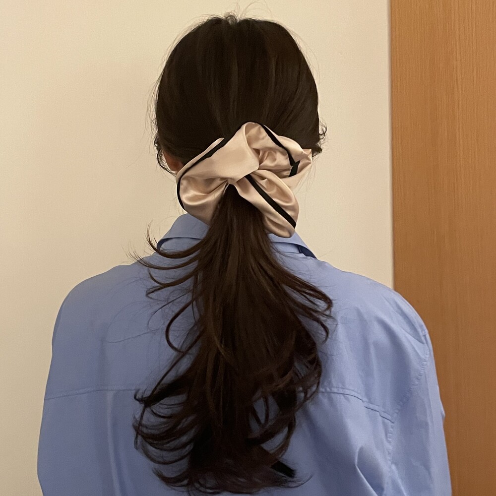 베이지 베이스에 블랙 라인을 더한 헤어 스크런치입니다.