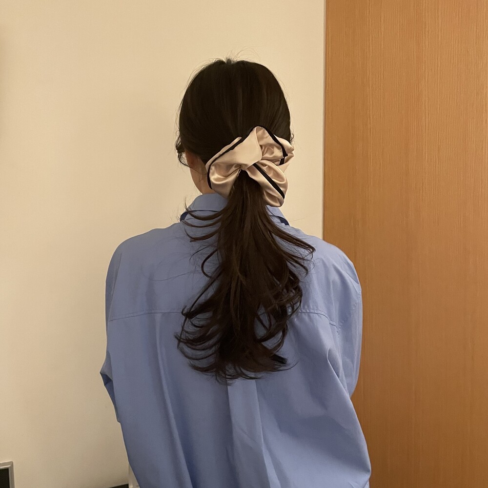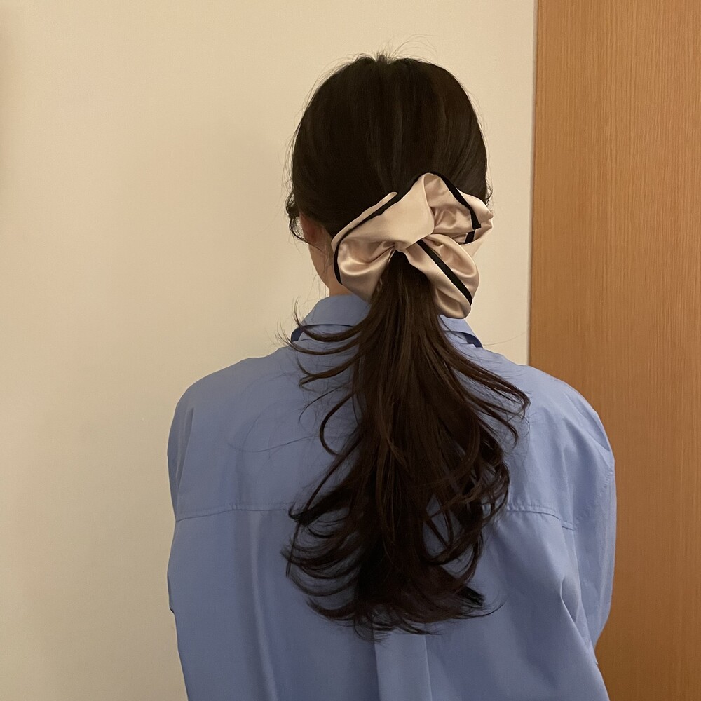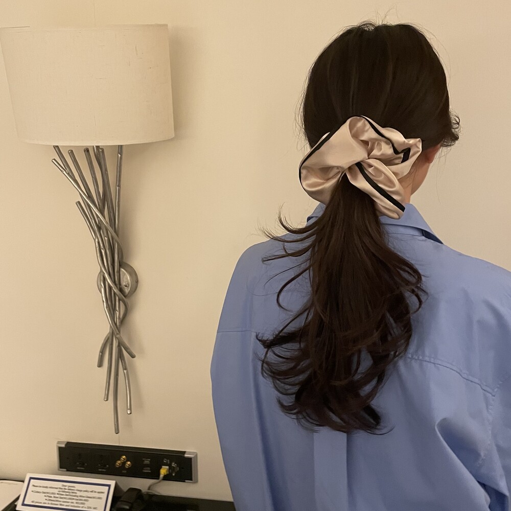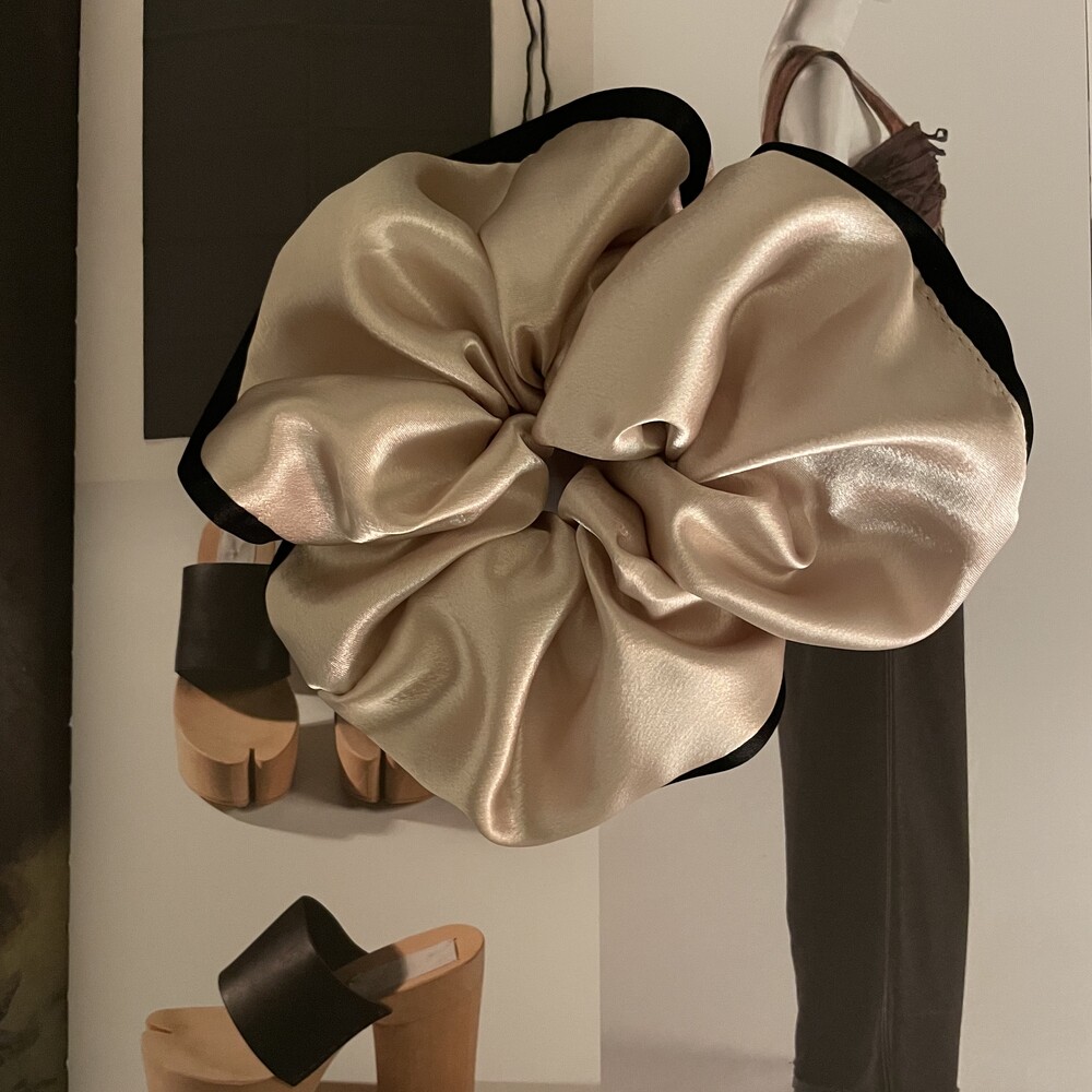 베이지 베이스에 블랙 라인을 더한 헤어 스크런치입니다.