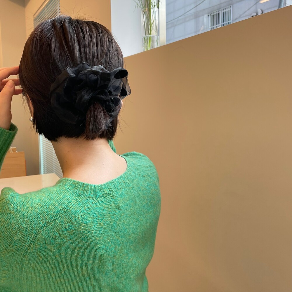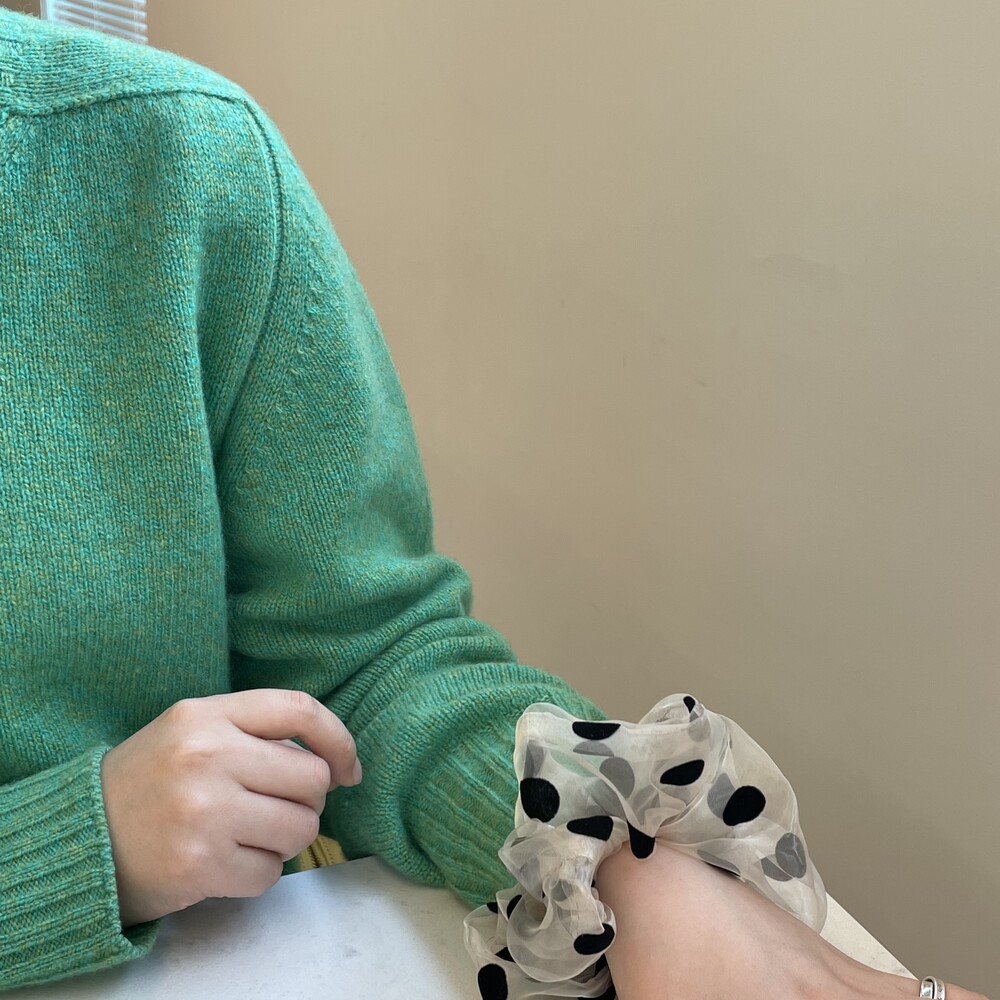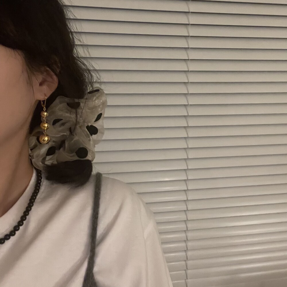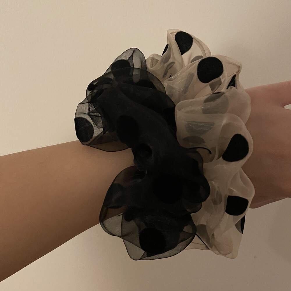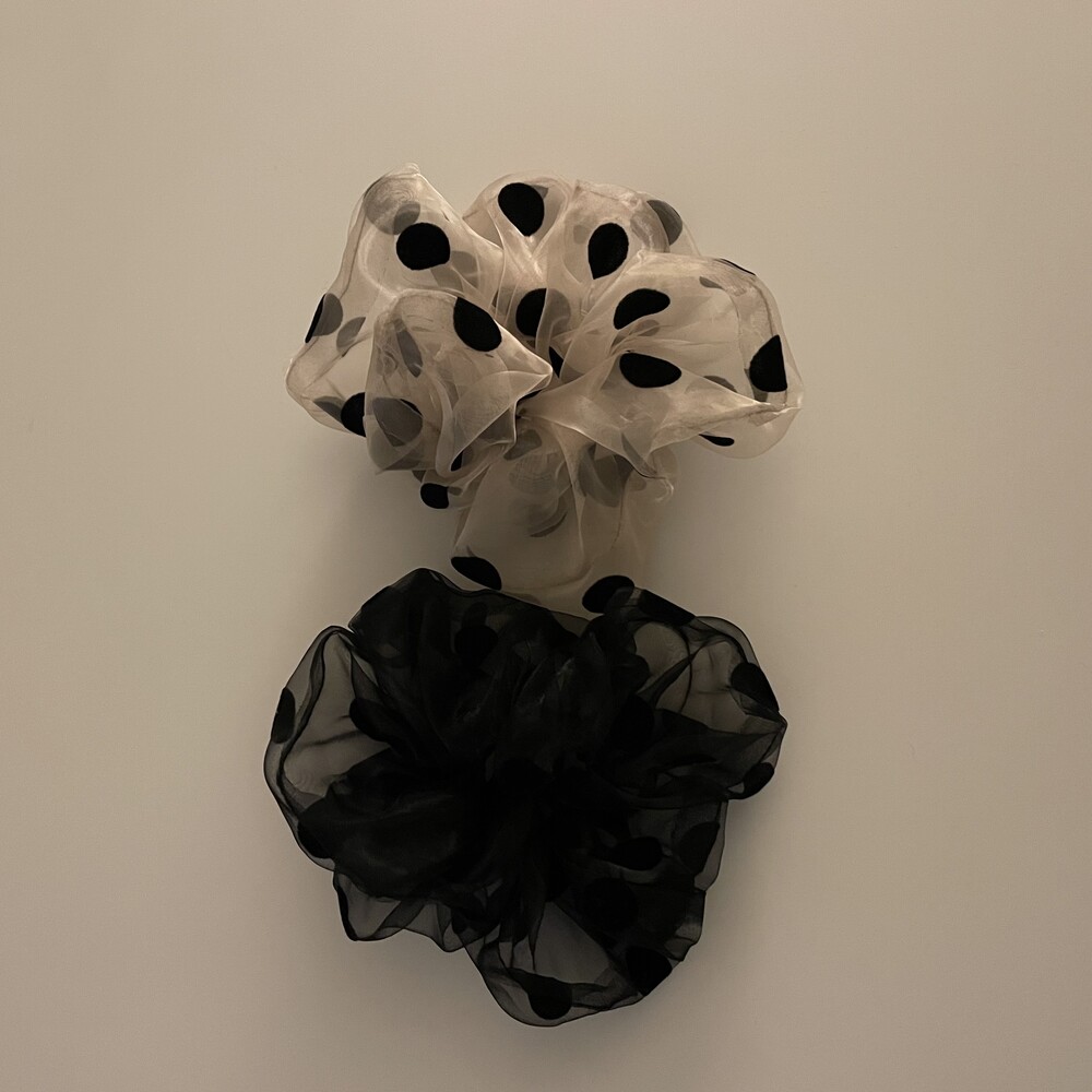 빈티지한 도트 프린팅으로 특별함이 느껴지는 헤어스크런치.