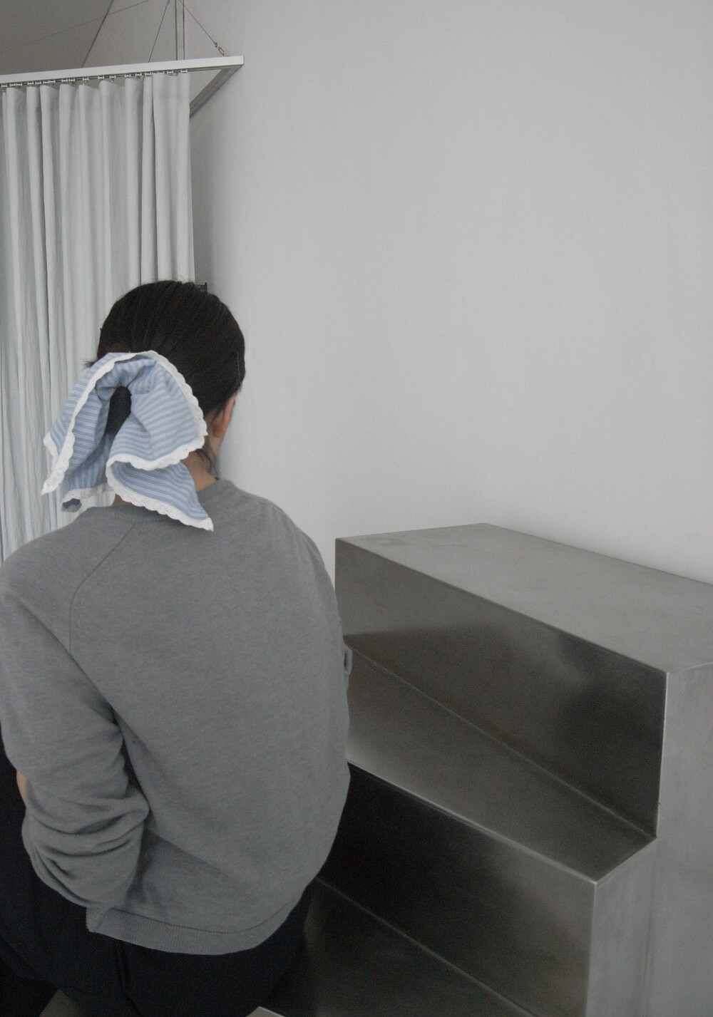 블루 스트라이프 패턴에 레이스를 더해 제작된