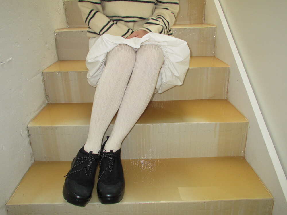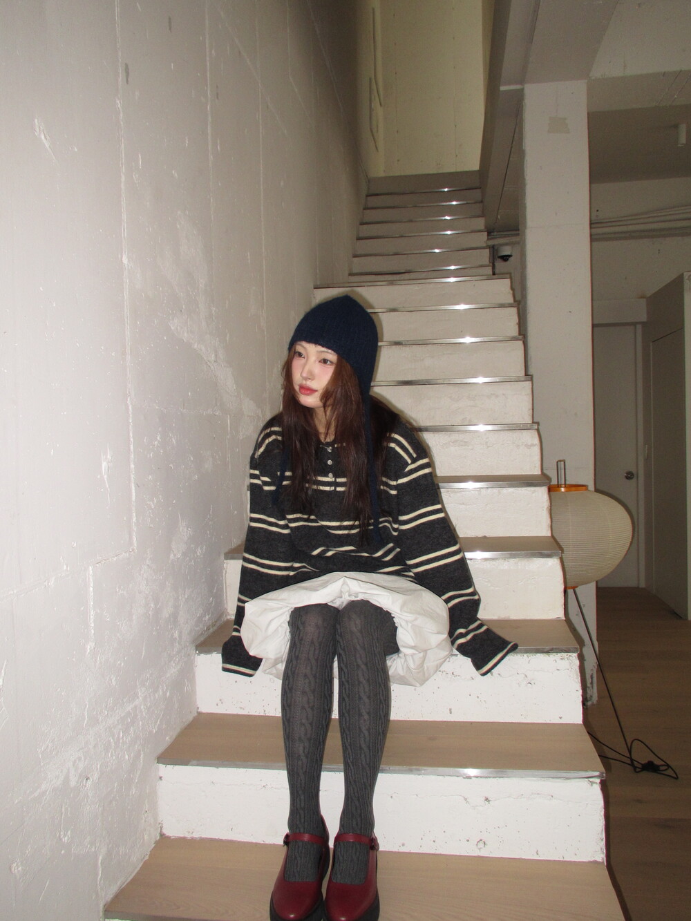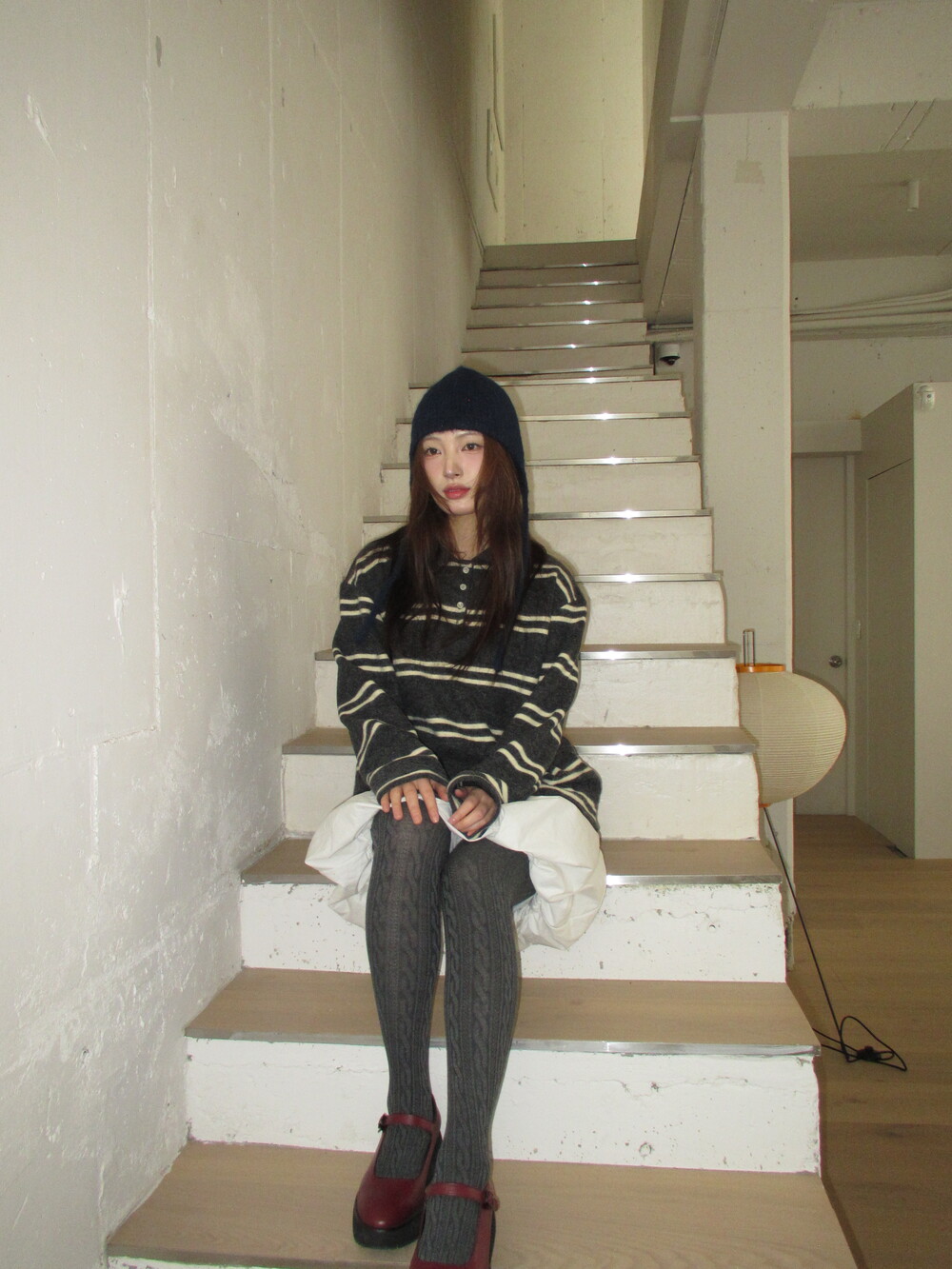 추운 계절 착용하기 좋은 트위스트 패턴의 코튼 스타킹입니다.