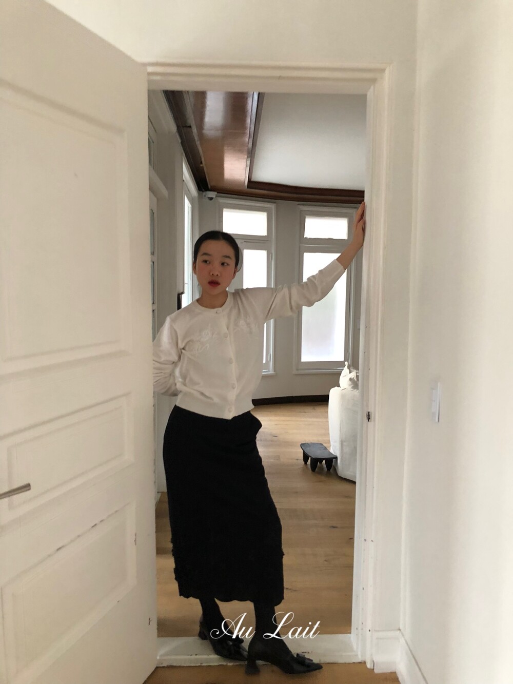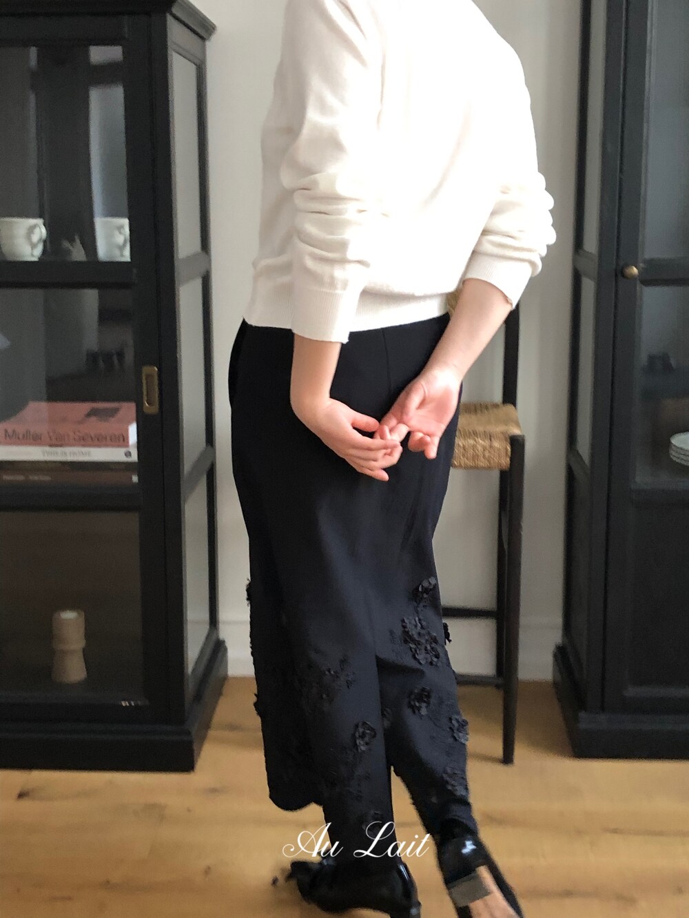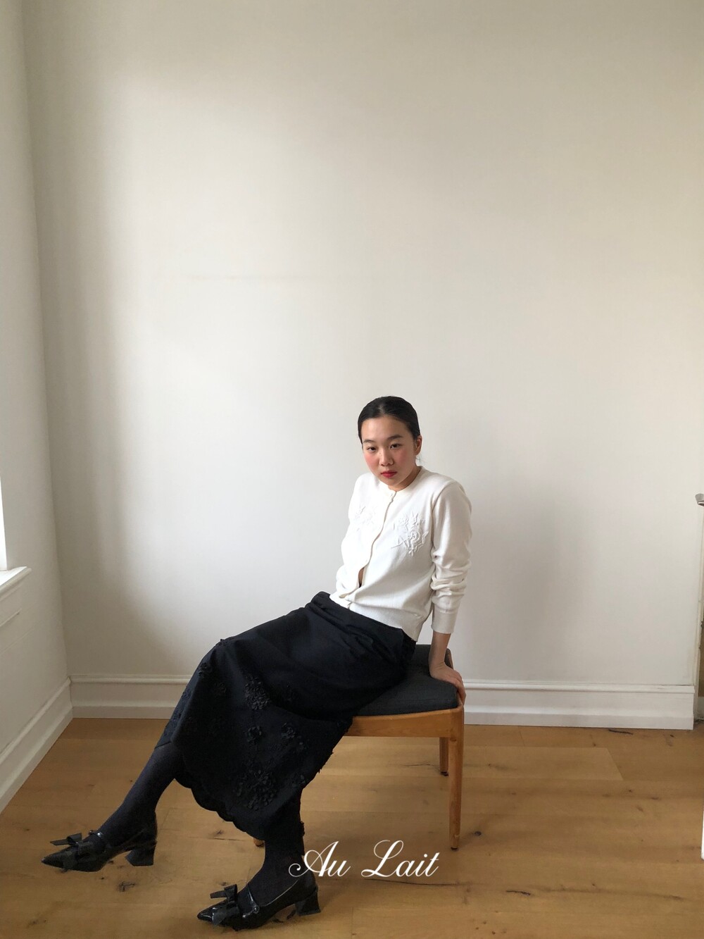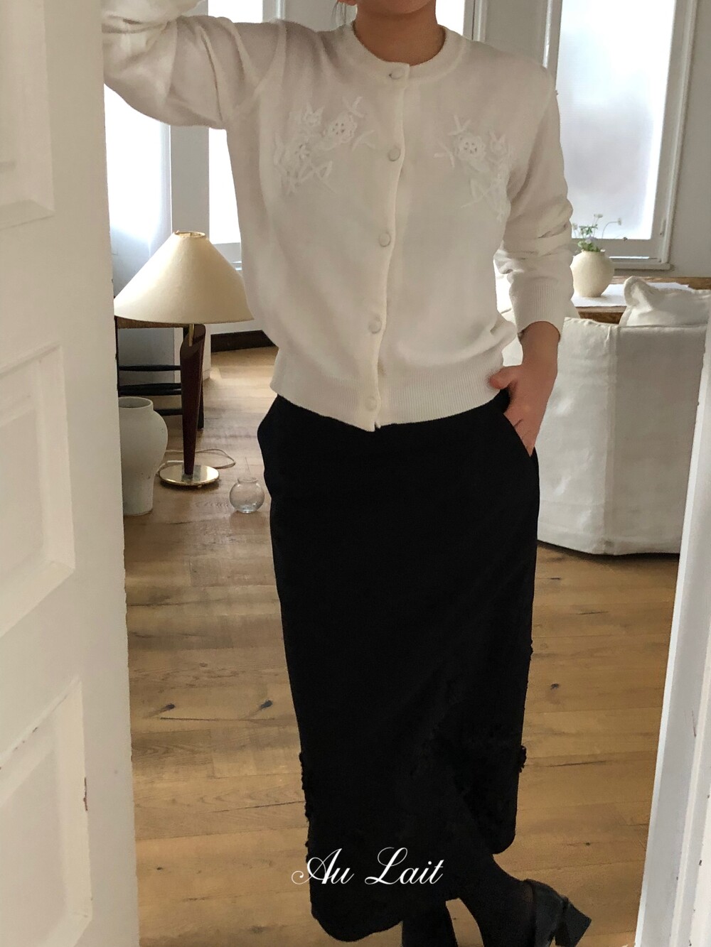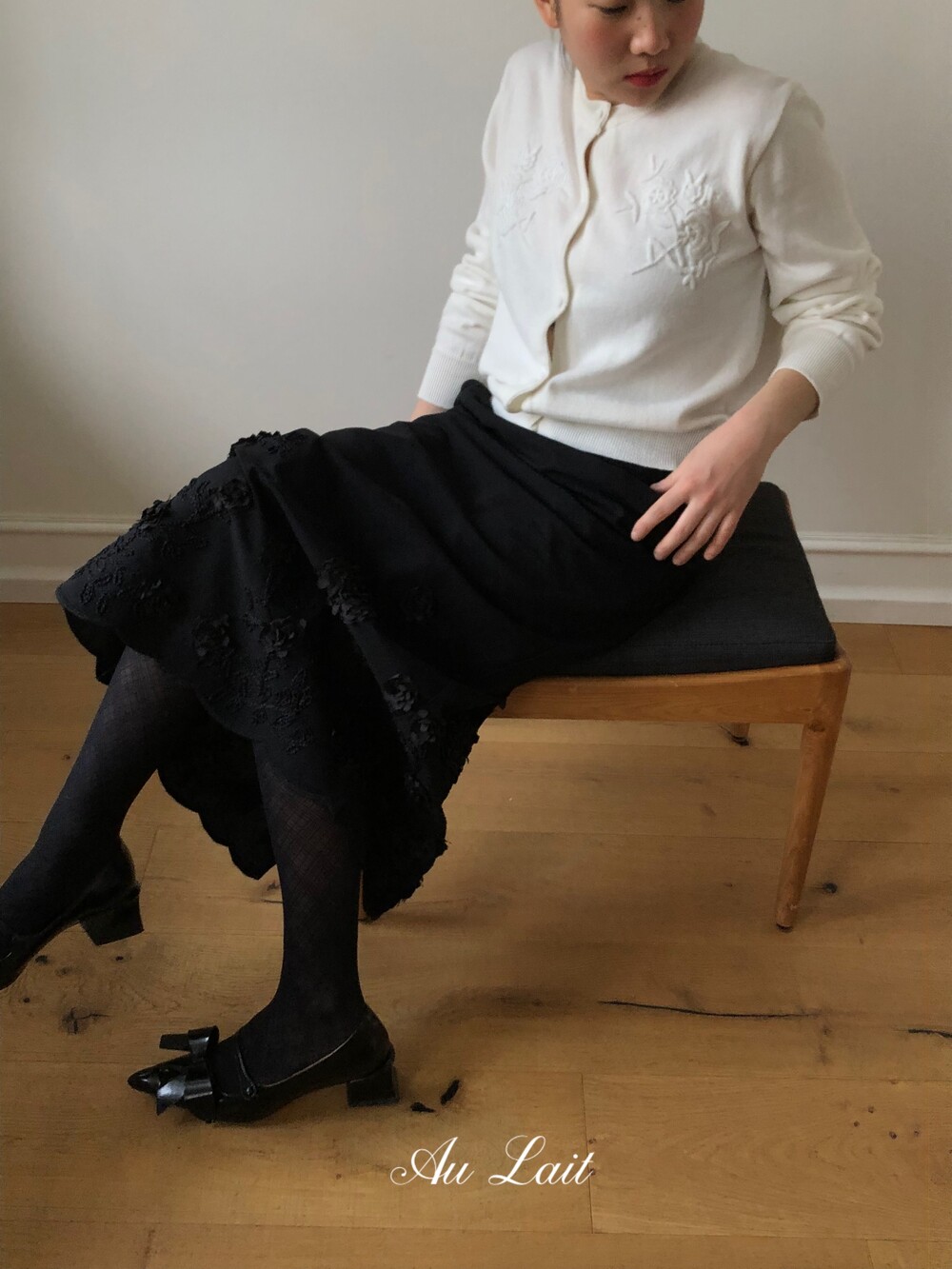 [AU LAIT MADE] FLOWER GARDEN SKIRT(BK)