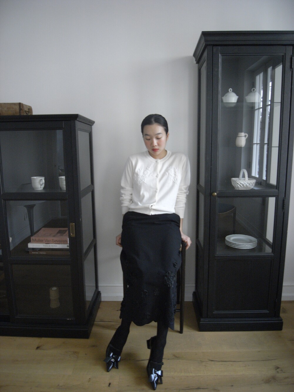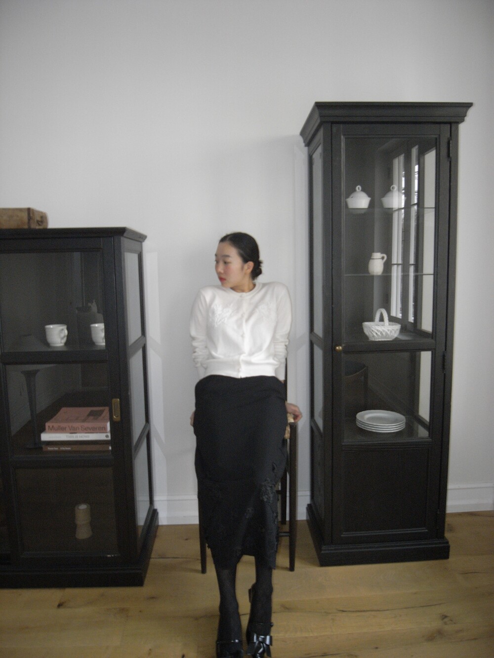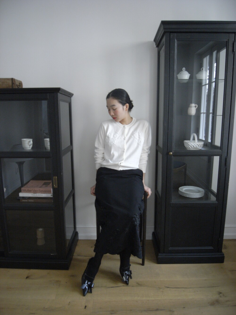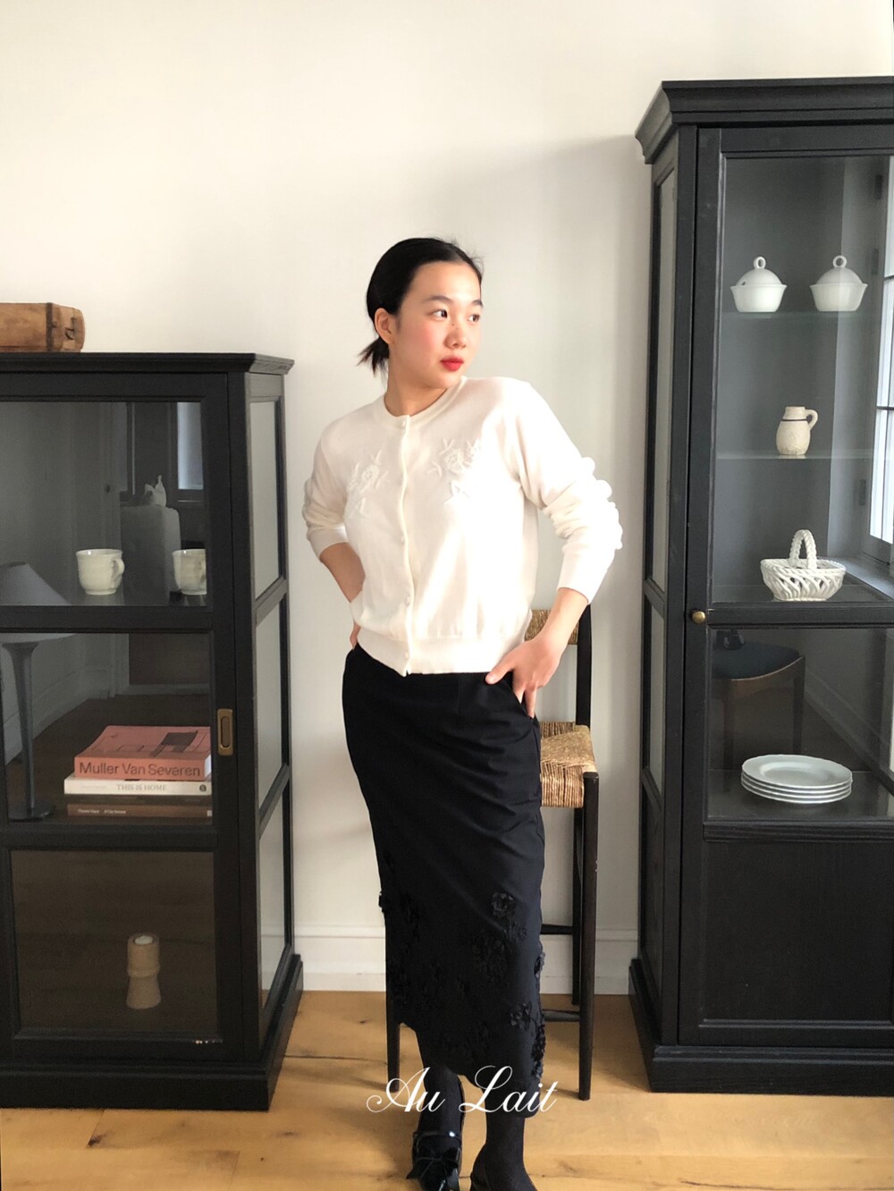 [AU LAIT MADE] FLOWER GARDEN SKIRT(BK)
