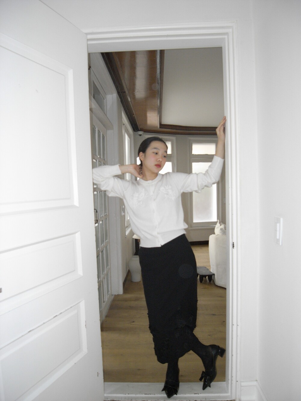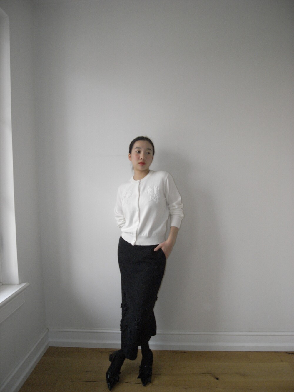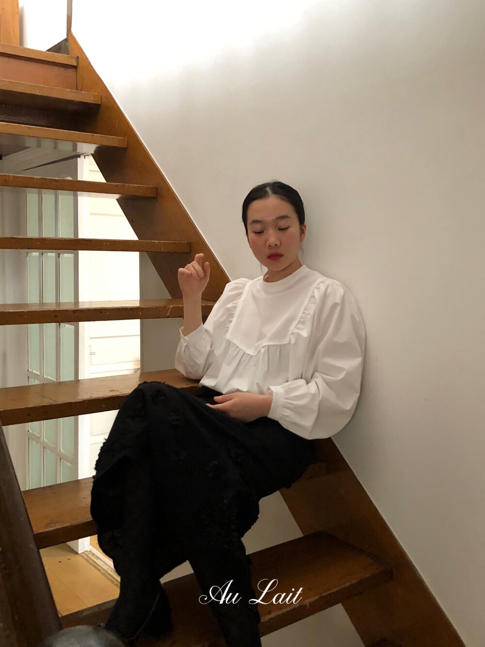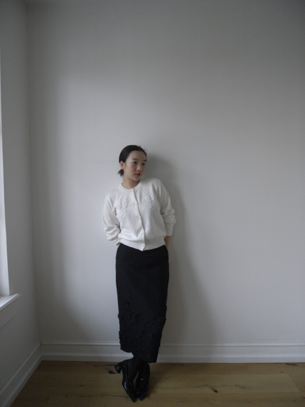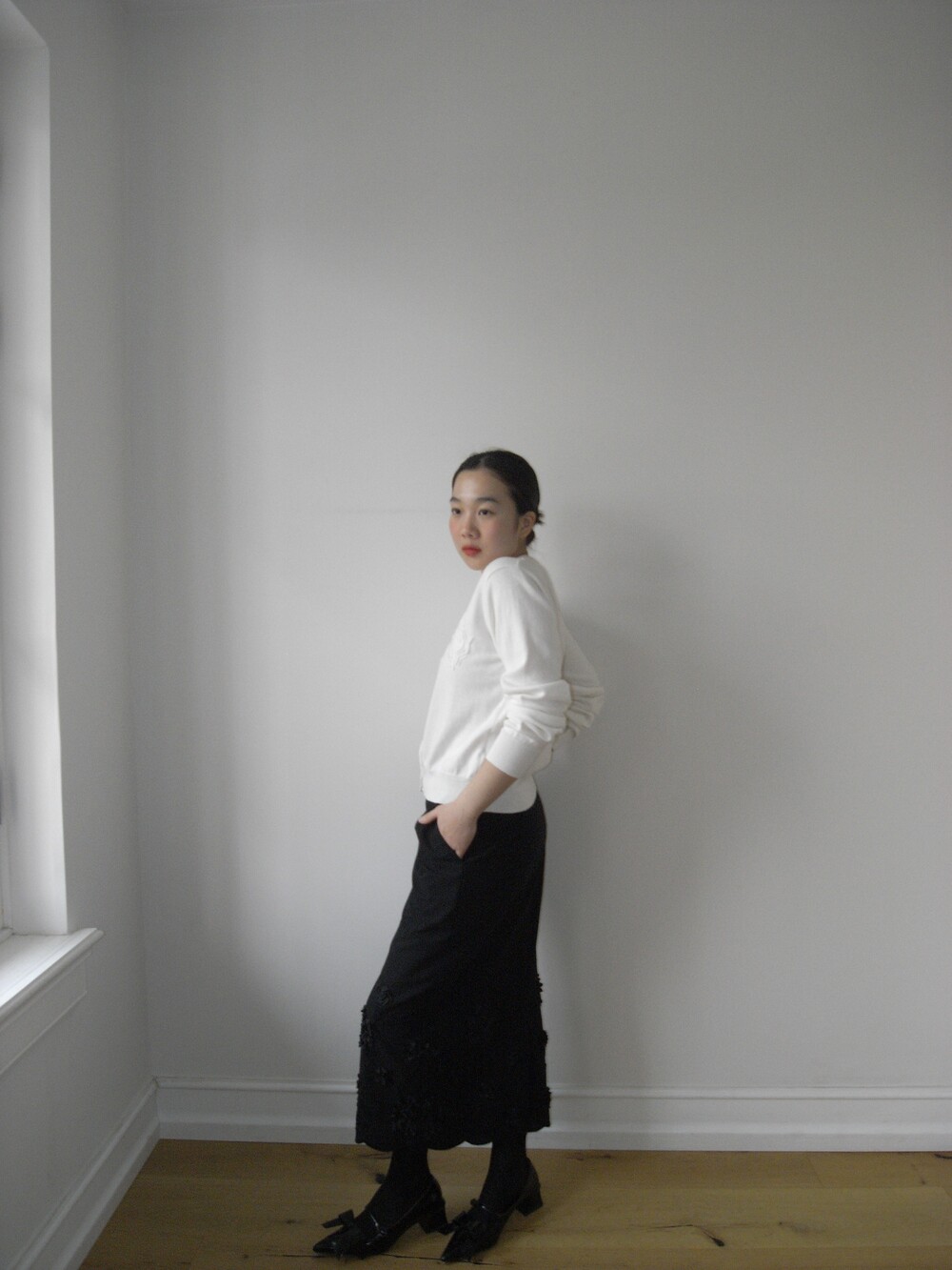 [AU LAIT MADE] FLOWER GARDEN SKIRT(BK)