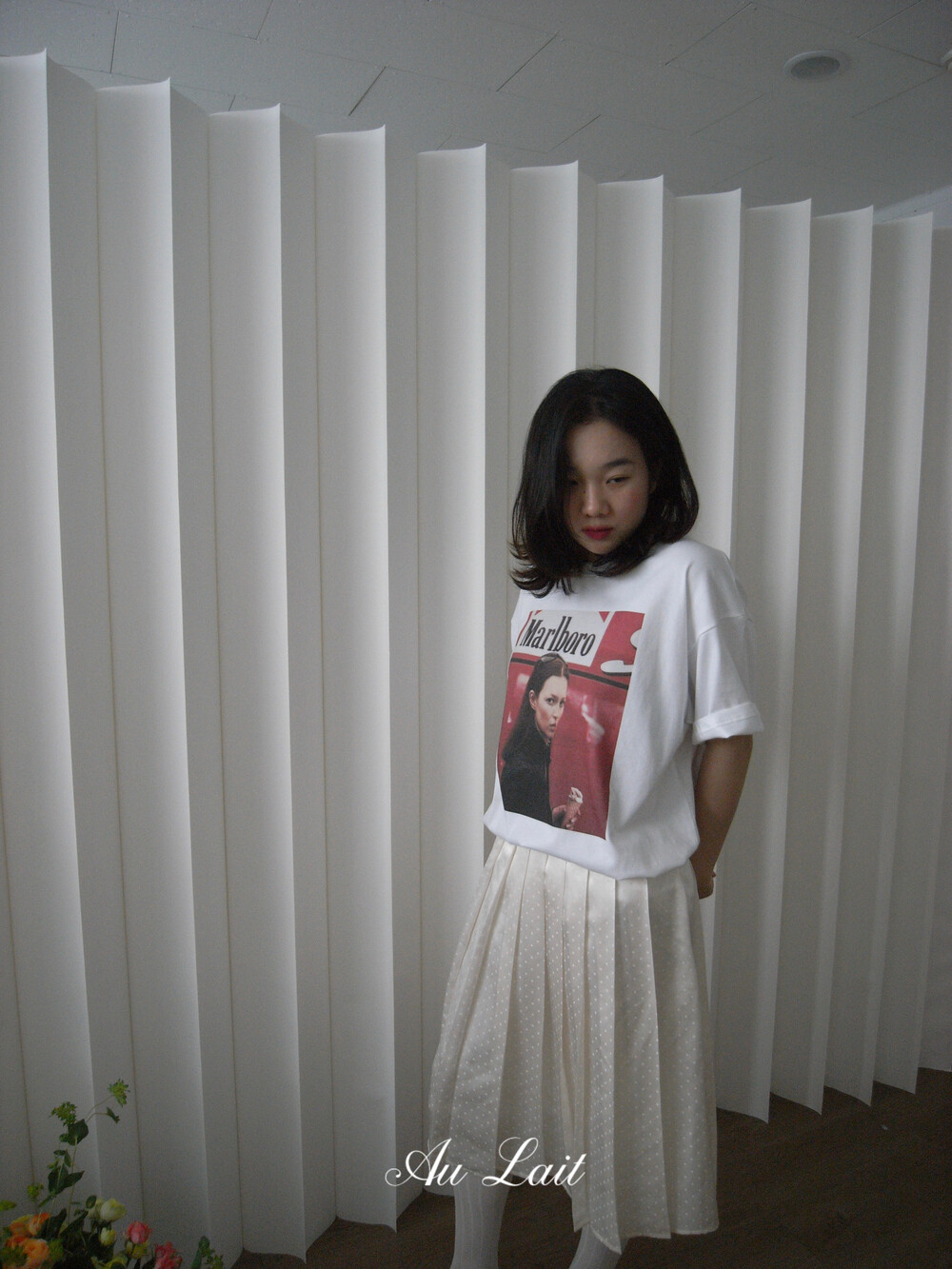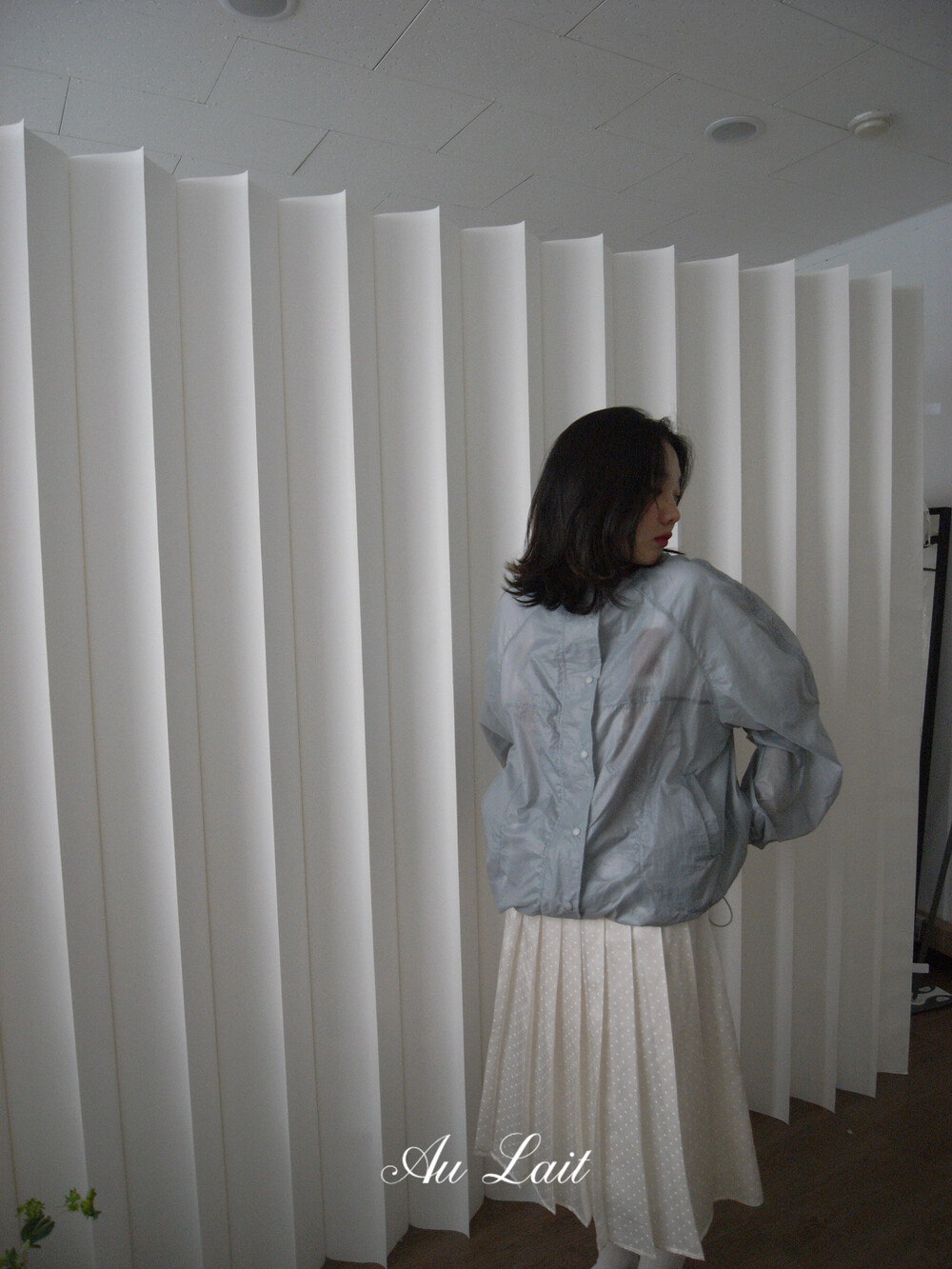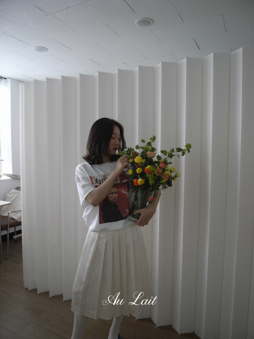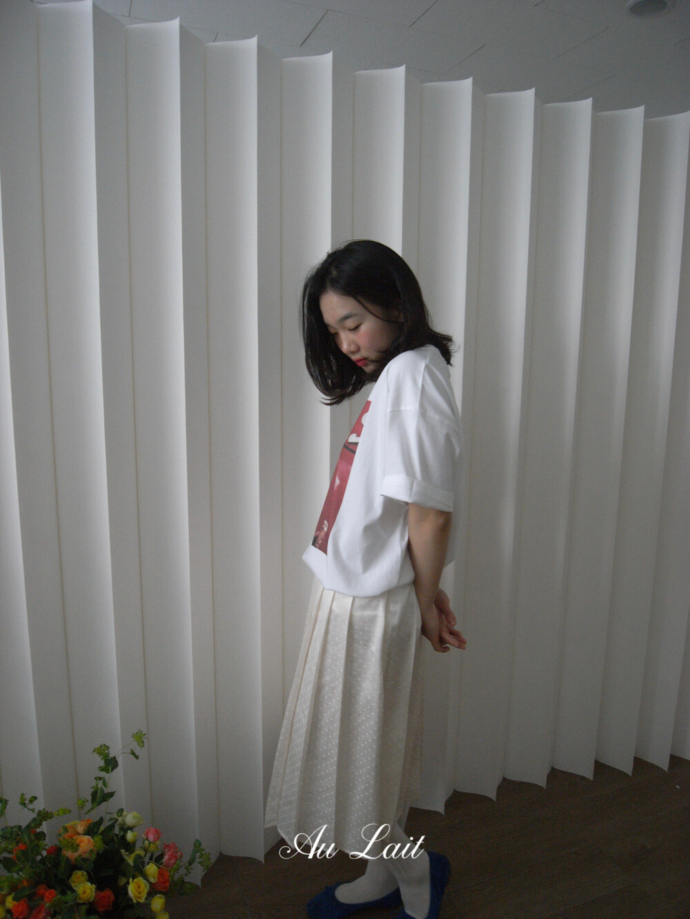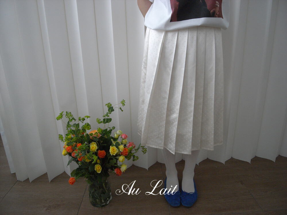 [AU LAIT MADE] CREAM DOT PLEATS SKIRT