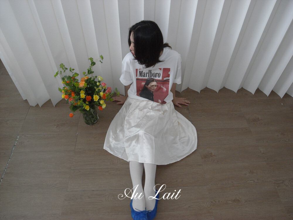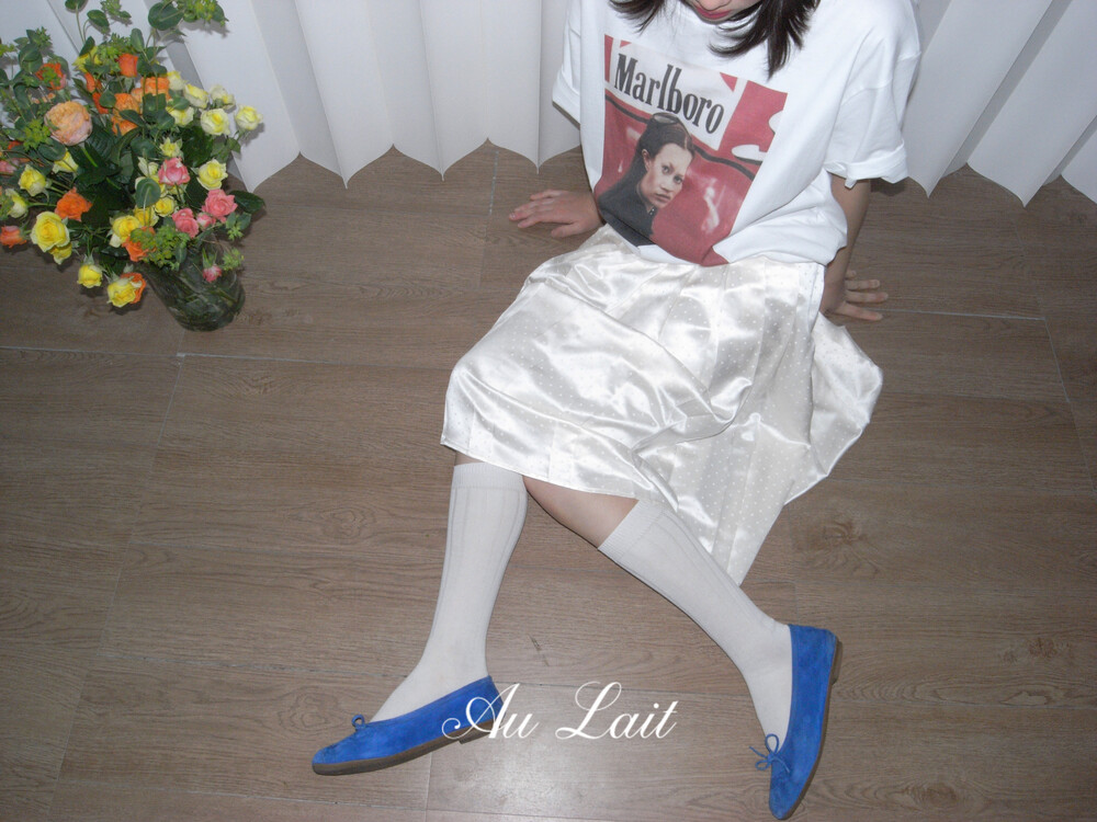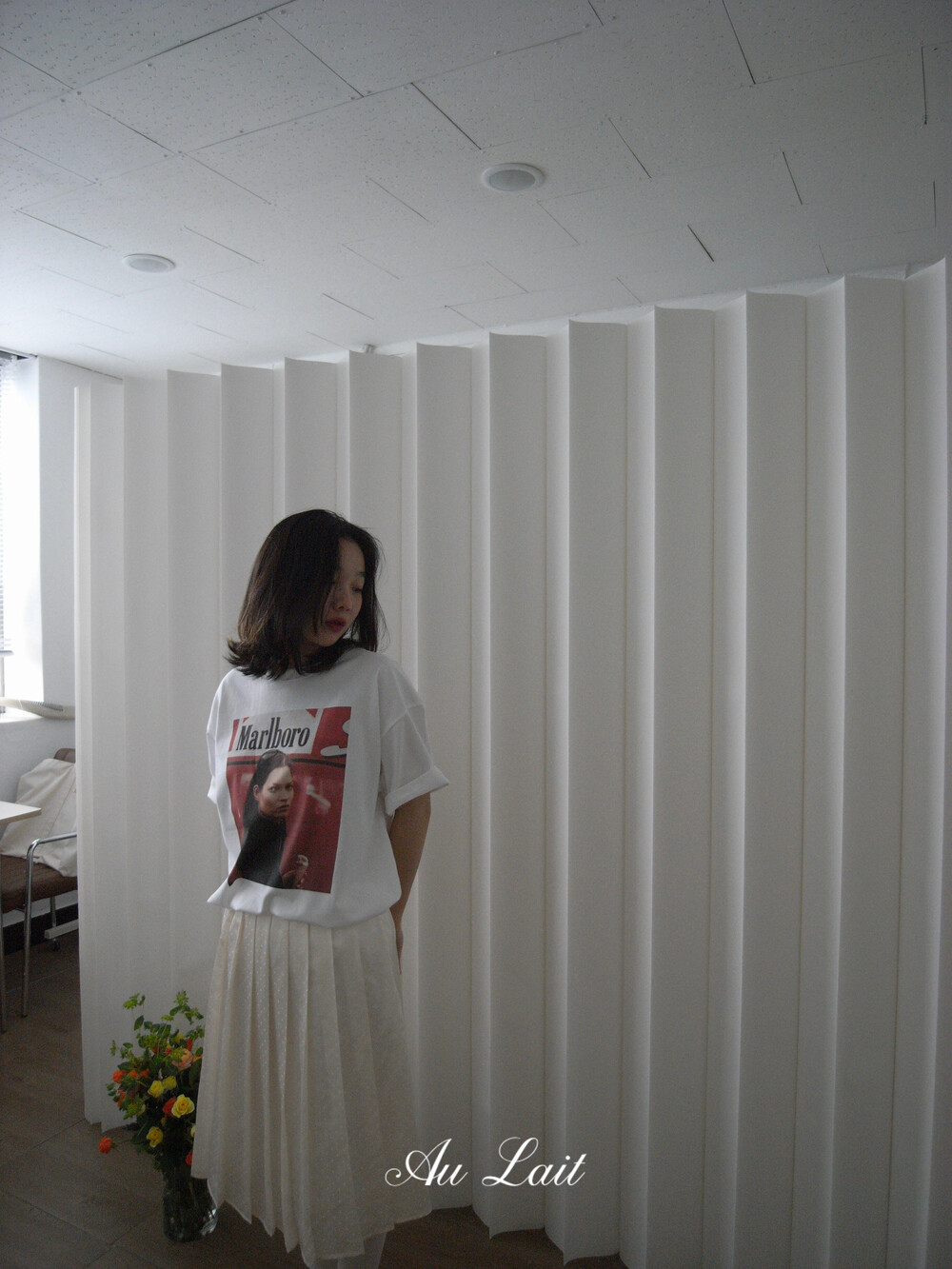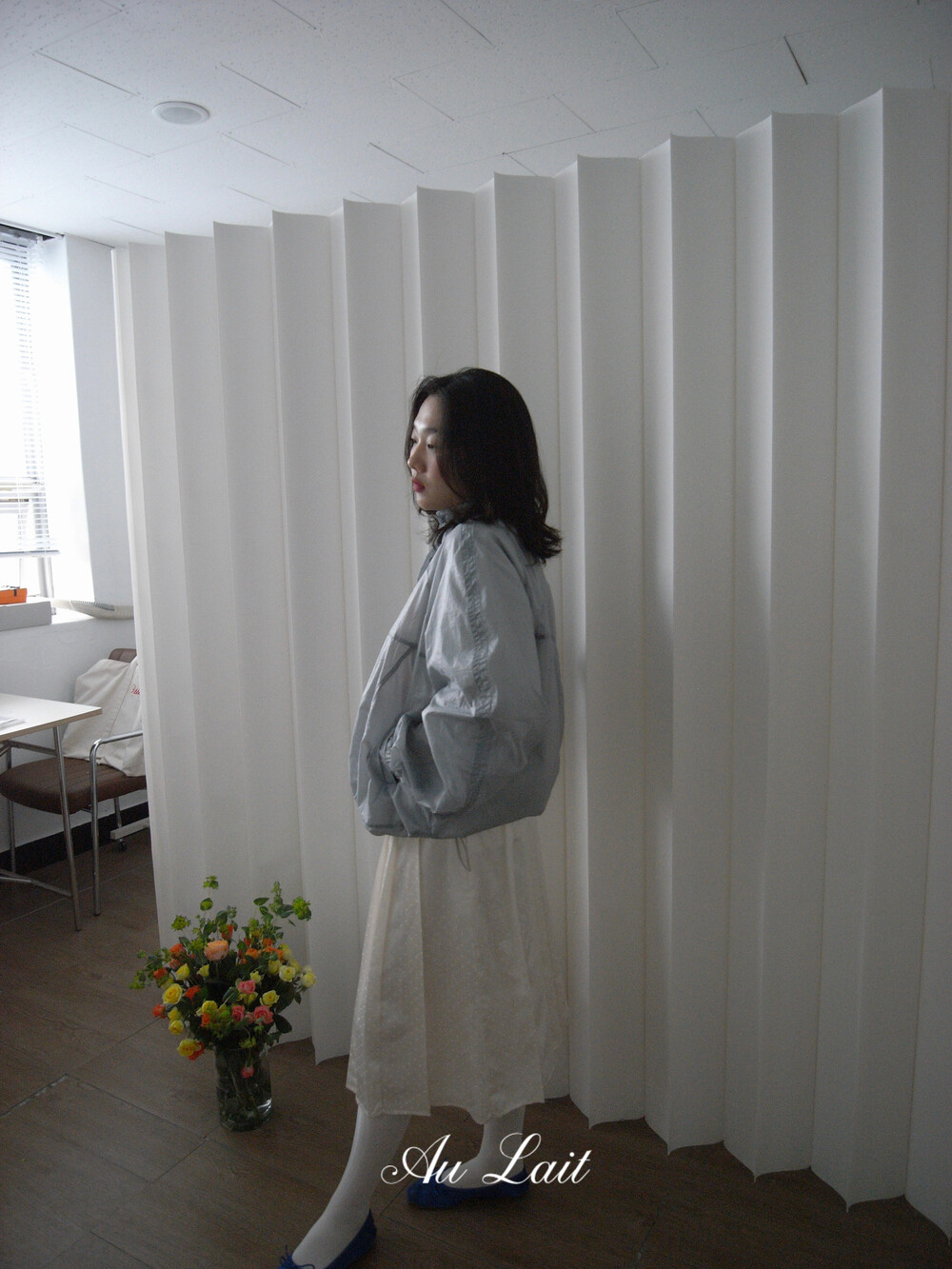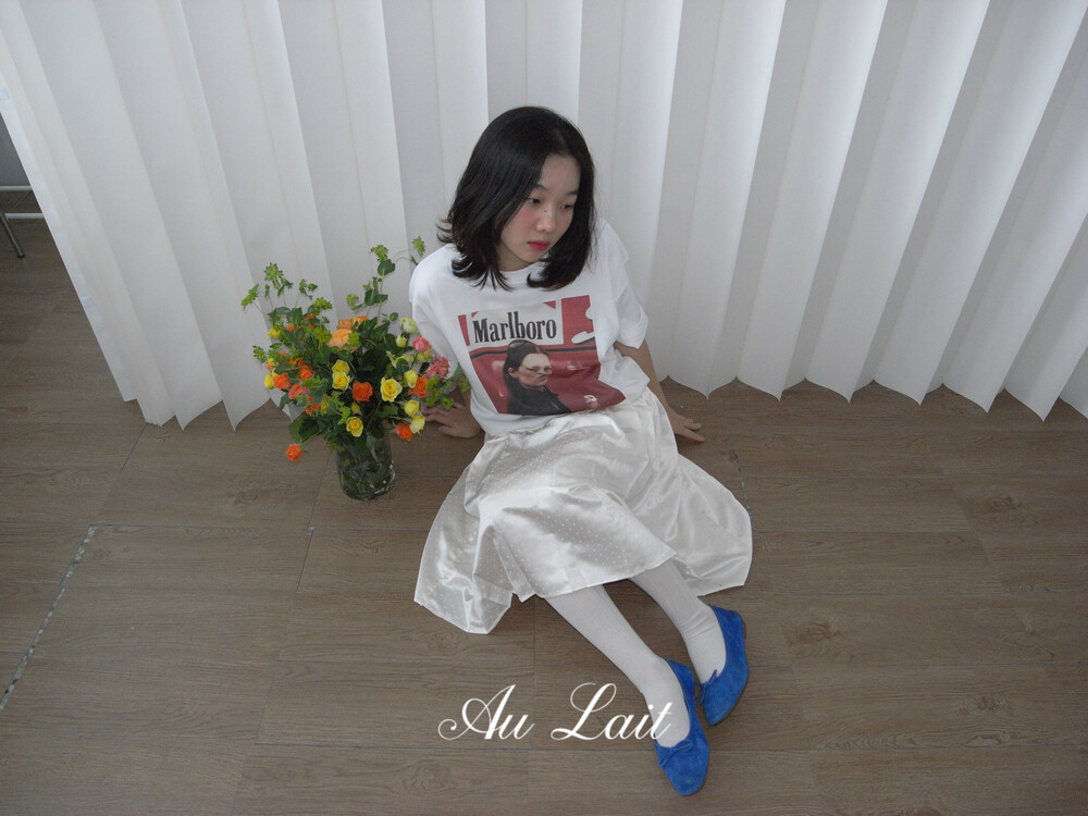 [AU LAIT MADE] CREAM DOT PLEATS SKIRT